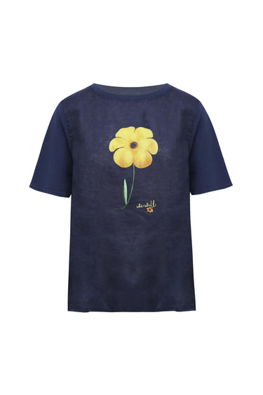 Una prenda que transmite optimismo y frescura con un lenguaje sutil y contemporáneo. La camiseta “Bloom Azul”, elaborada en lino y algodón, fusiona la ligereza natural de sus fibras con un diseño gráfico protagonista: una flor vibrante que emerge sobre un fondo navy profundo, simbolizando luz, crecimiento y esperanza. Su silueta relajada la convierte en una pieza versátil para el día a día, mientras su ilustración añade un acento emocional que conecta con una mujer Scarsa auténtica, sensible y segura de su esencia.