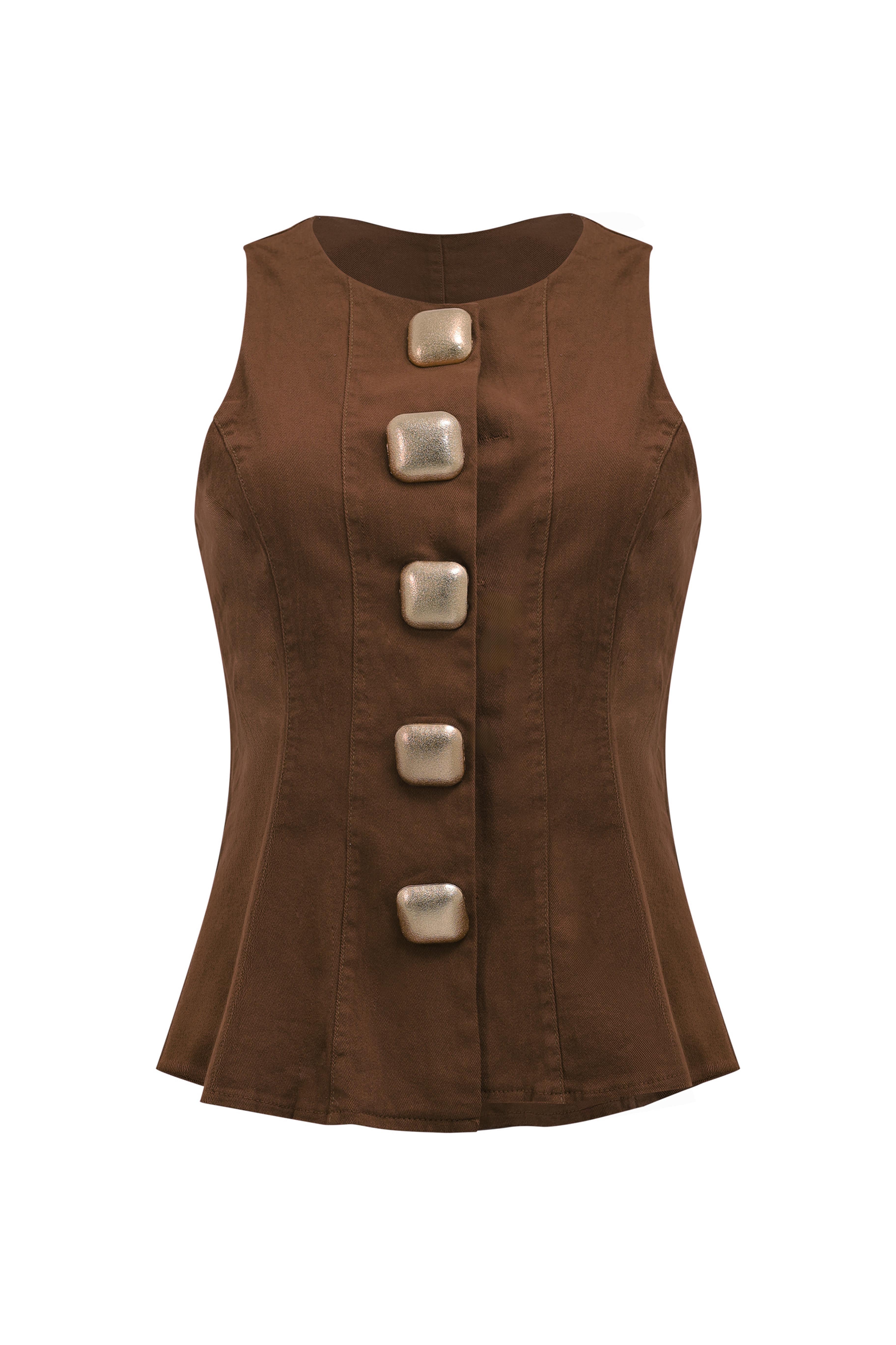 Una blusa que celebra la estructura y el poder de los detalles. La blusa “Bronze Sculpt” destaca por su silueta entallada que moldea la figura con elegancia, mientras su tono cálido en marrón profundo evoca sofisticación atemporal. El protagonismo lo llevan sus botones metálicos de gran formato, que aportan un aire escultórico y contemporáneo, convirtiéndose en un statement de diseño. Es una prenda ideal para la mujer Scarsa que busca elevar su estilo con piezas versátiles, capaces de transitar entre lo casual chic y lo sofisticado con carácter y personalidad.