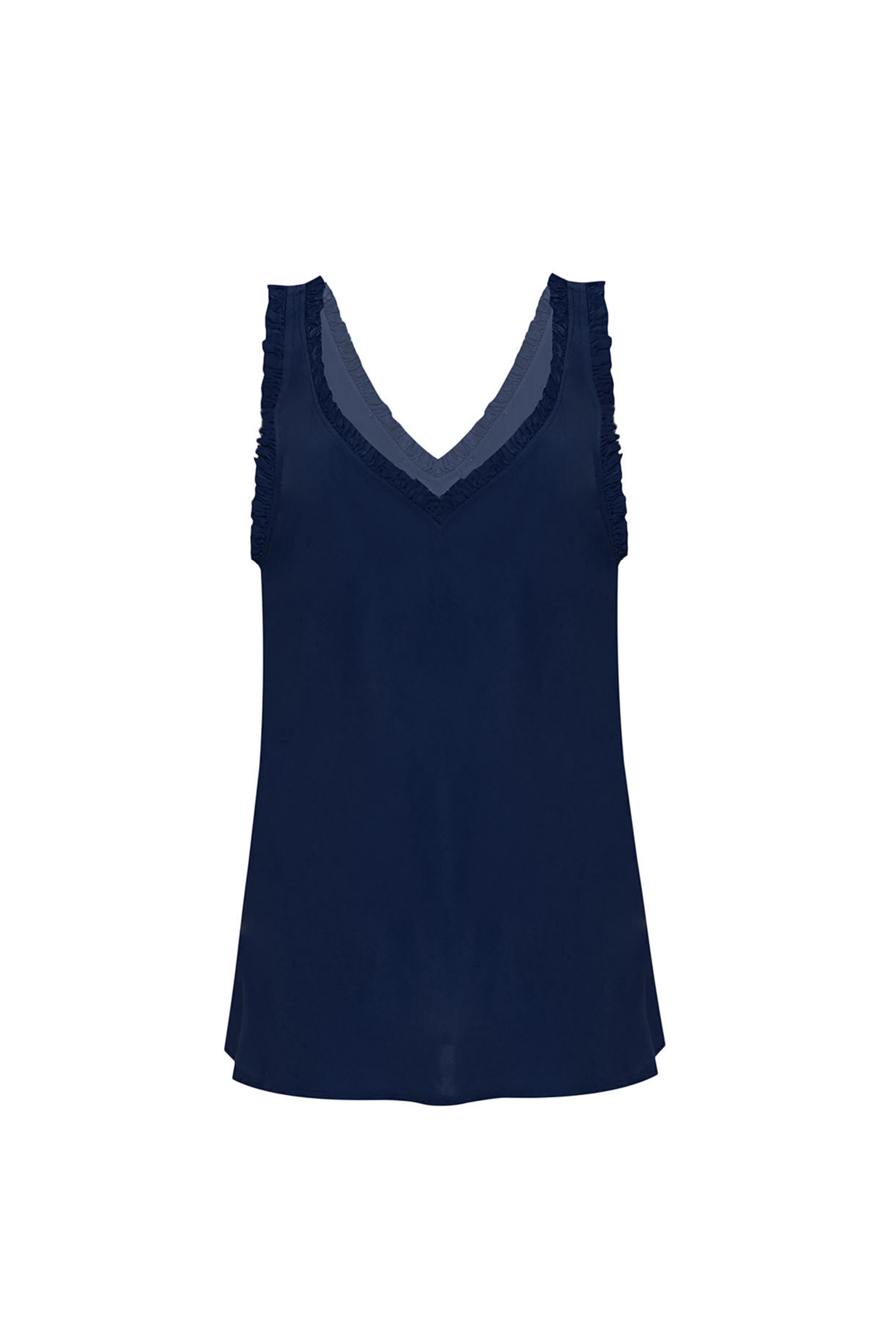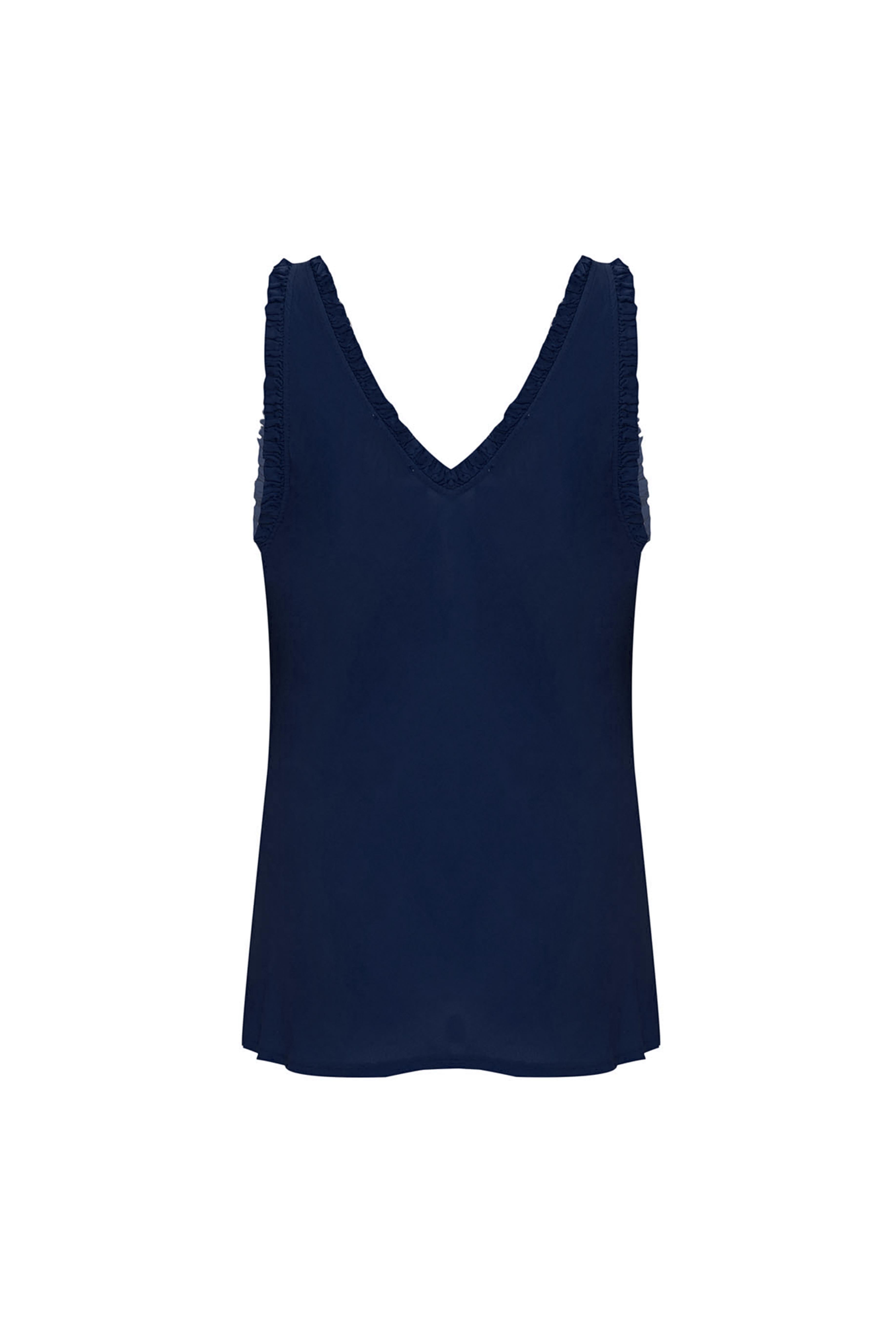 Una prenda esencial elevada a su máxima expresión. La blusa “Navy Essence” redefine lo básico con una silueta limpia y femenina, destacada por su escote en V y delicados acabados con sutiles volantes que aportan movimiento y sofisticación. Su tono azul profundo evoca elegancia atemporal, convirtiéndola en un fondo de armario versátil que transita con facilidad entre lo casual y lo refinado. Ideal para la mujer Scarsa que entiende que la verdadera elegancia está en los detalles y en la simplicidad bien construida.