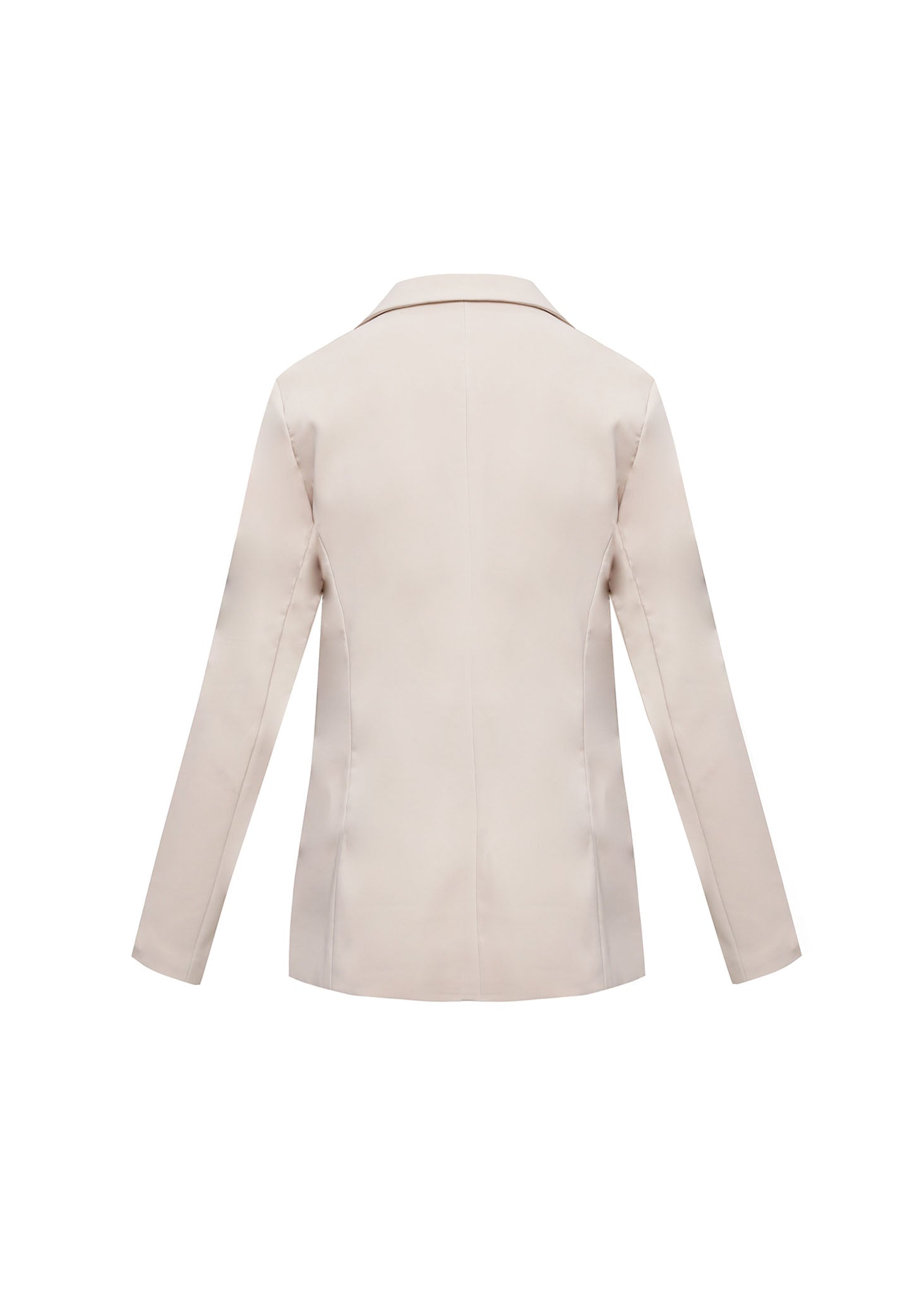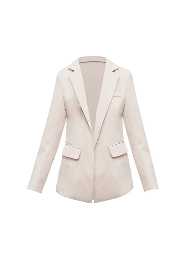 Este elegante blazer es la pieza clave para un armario sofisticado y profesional. Confeccionado en un suave tono beige claro, presenta un corte largo y estructurado que estiliza la figura y ofrece un look pulido sin esfuerzo. Su diseño de frente abierto, cuello de solapa clásico y bolsillos con solapa le dan un toque moderno. Es perfecto para la oficina, reuniones o para elevar un look casual con jeans.