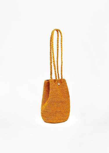 Bolso tipo bucket estilo tejido disponible en color: AMARILLO ( Mostaza ) Y Vinotinto .