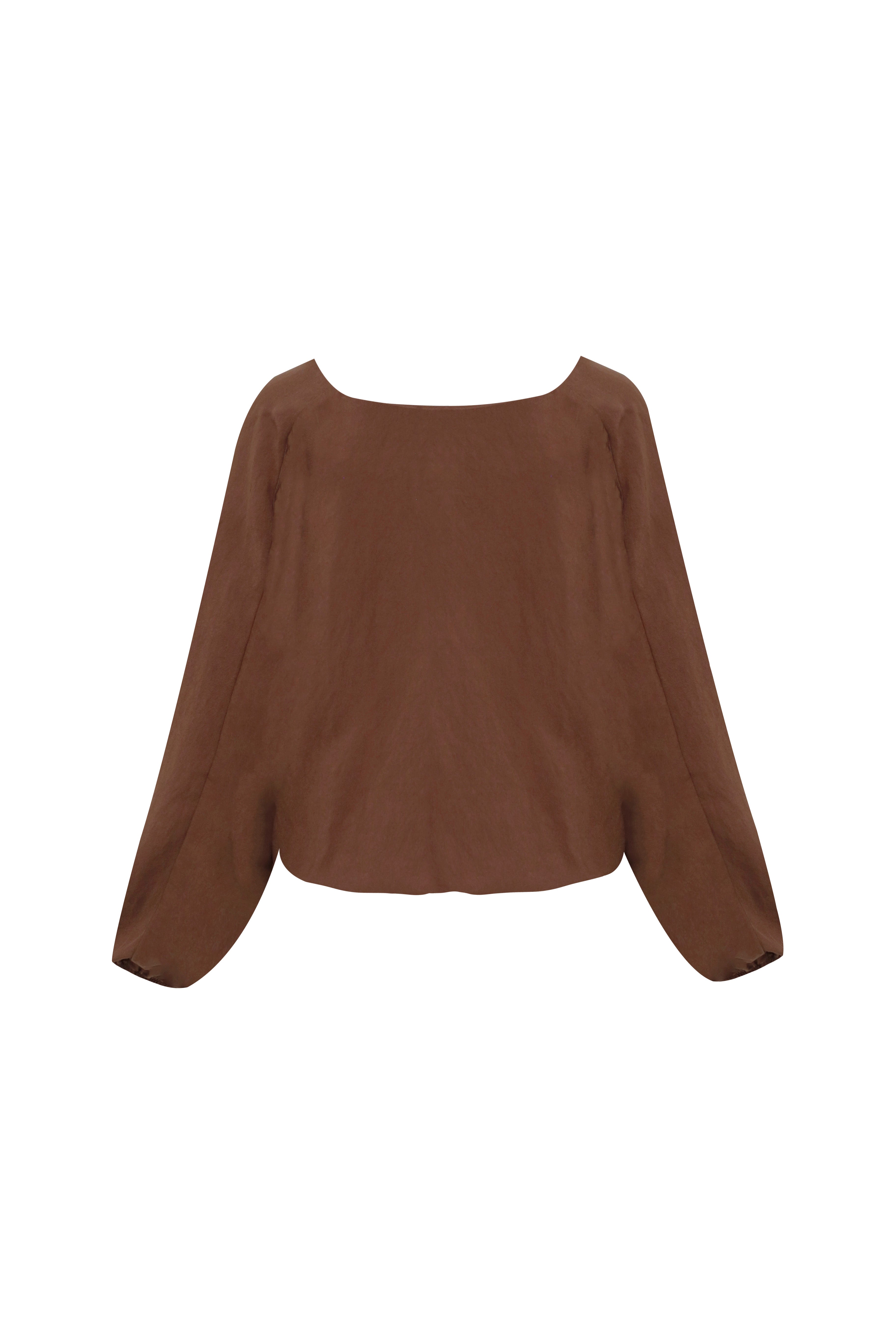Confeccionada en un tejido satinado de alta densidad, la pieza destaca por su caída fluida y un brillo sutil que evoca la delicadeza de la seda. Sus mangas de volumen relajado y el corte cropped con base elástica aseguran un ajuste impecable, convirtiéndola en la pareja perfecta para prendas de tiro alto y estilismos de alta gama.
