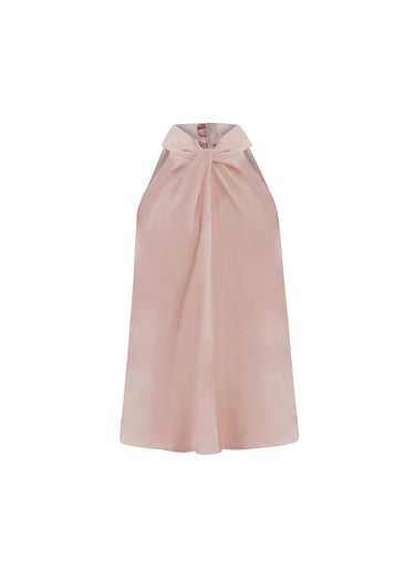 Eleva tu estilo con esta elegante blusa blanca sin mangas, confeccionada en un tejido satinado de acabado brillante que aporta un look sofisticado y femenino. Su diseño de cuello halter con drapeado frontal crea una caída fluida y favorecedora, ideal para cualquier ocasión. El cierre posterior con botón añade un toque delicado mientras mantiene un ajuste