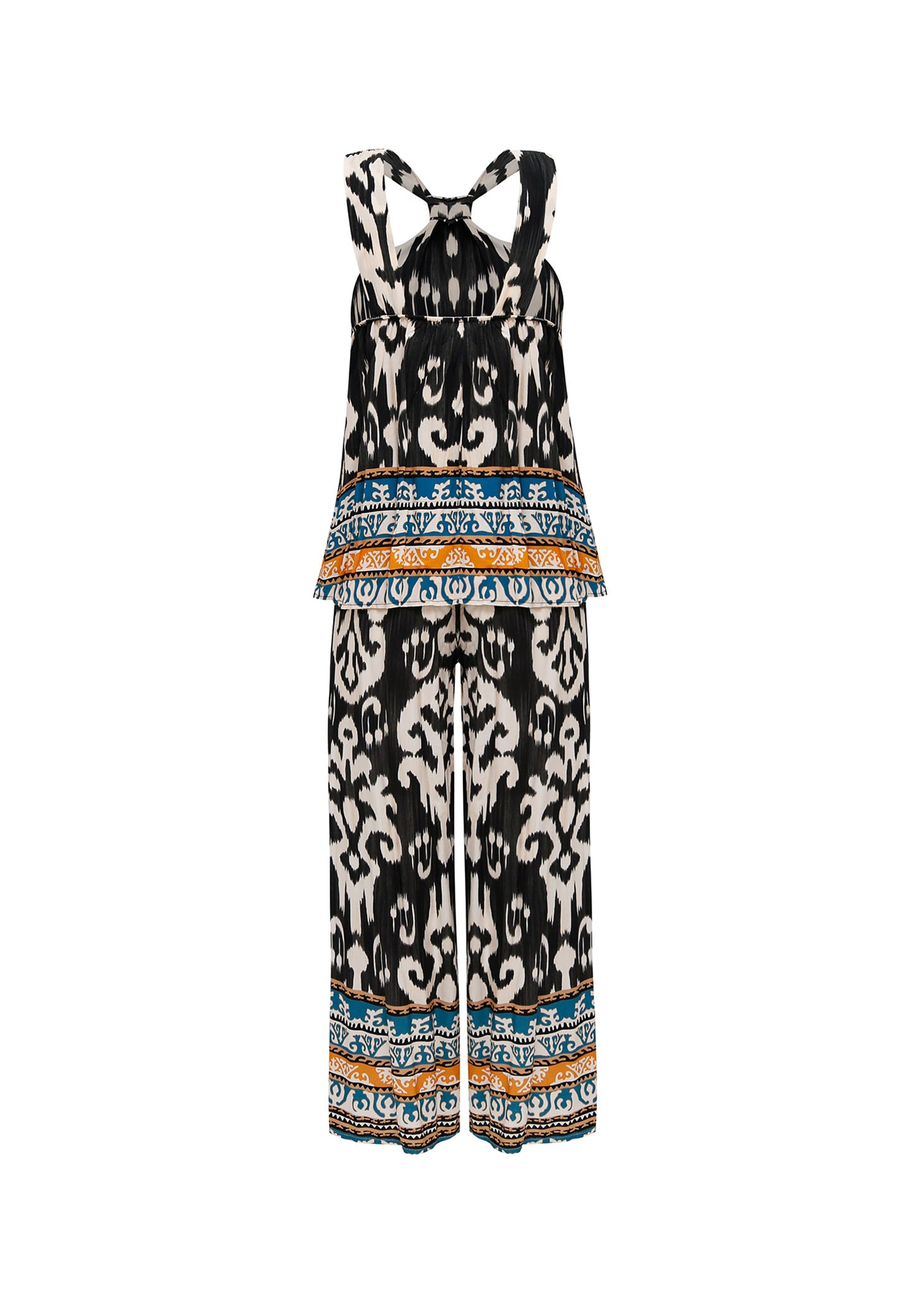 Adopta un look vibrante y sin esfuerzo con este espectacular conjunto de dos piezas ligero y fluido. Perfecto para vacaciones, resort wear o cualquier ocasión que pida un estilo relajado pero sofisticado.