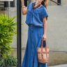 Falda en denim de espíritu atemporal que reinterpreta lo clásico con una silueta femenina y fluida. Su diseño en línea A se abre sutilmente desde la cadera, aportando movimiento y ligereza, mientras el frente abotonado y los bolsillos con tapa elevan el carácter utilitario con un toque sofisticado.