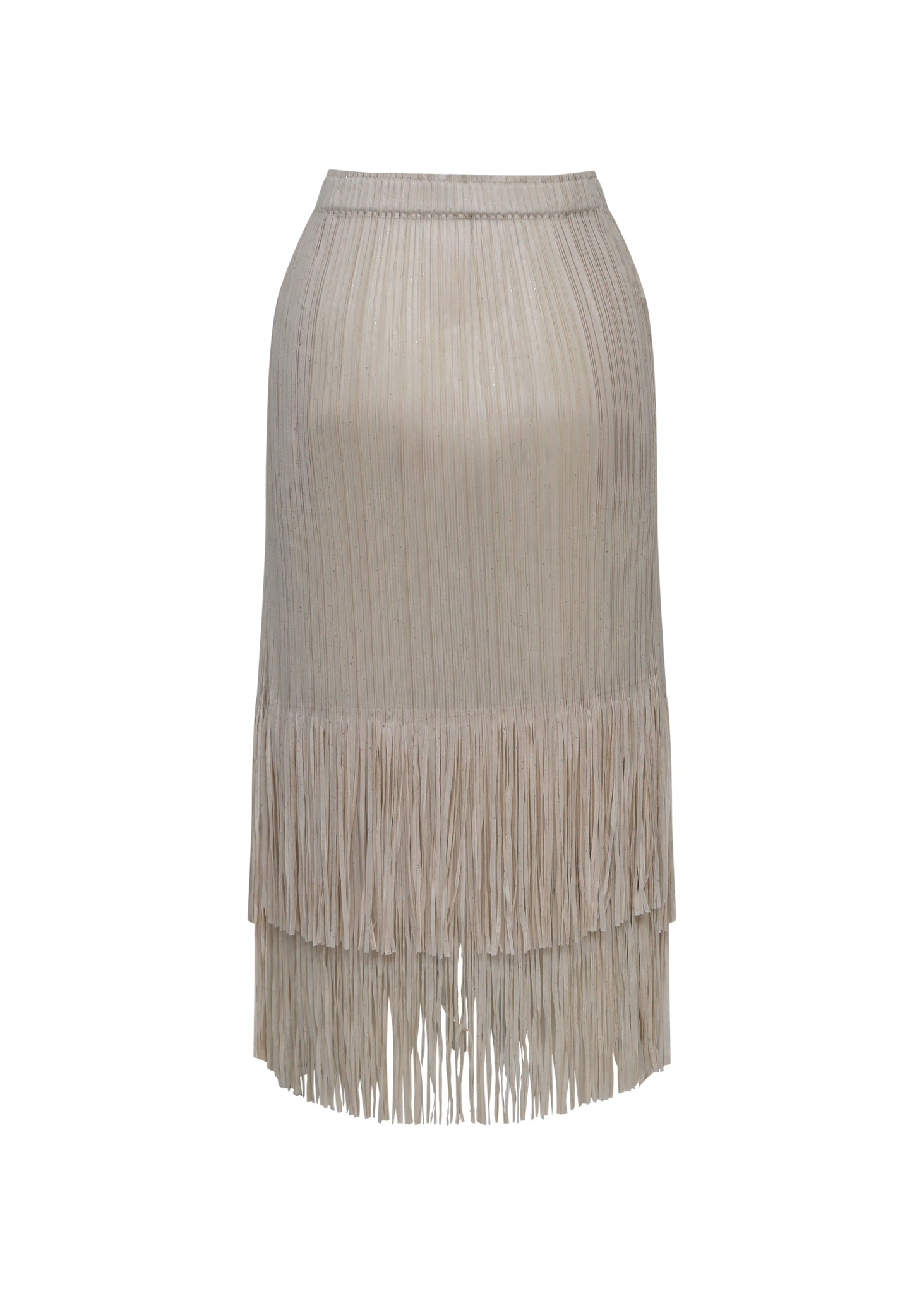 Falda plisada en seda con cintura anatómica que abraza tu silueta de forma natural. El tejido de seda fluye elegantemente con cada movimiento, ofreciendo comodidad y sofisticación en un solo diseño. Los pliegues precisos crean volumen estratégico que favorece tu figura, mientras la cintura ergonómica se adapta a tu cuerpo sin comprimir. Perfecta para ocasiones especiales o para elevar tu día a día con un toque de lujo accesible. Una prenda versátil que transita sin esfuerzo de la oficina a la noche.