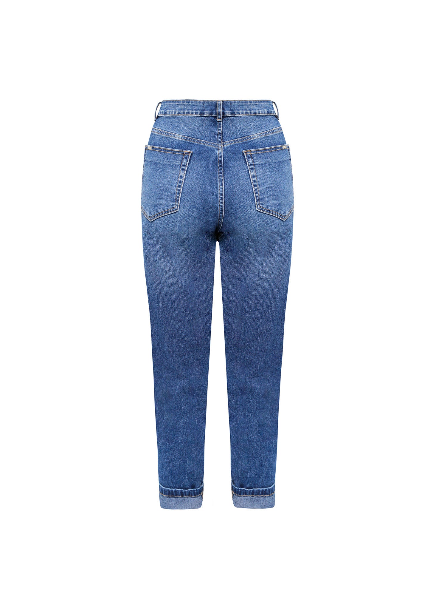 Estos jeans presentan un corte relajado de tendencia que ofrece una silueta desenfadada y cómoda sin sacrificar el estilo. El tiro es alto ( high-rise ), lo que ayuda a alargar visualmente la pierna y estilizar la figura, asegurando un ajuste favorecedor.