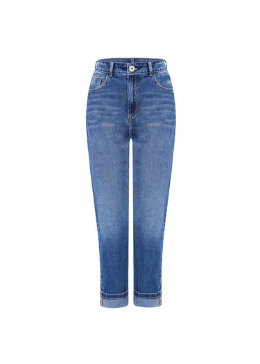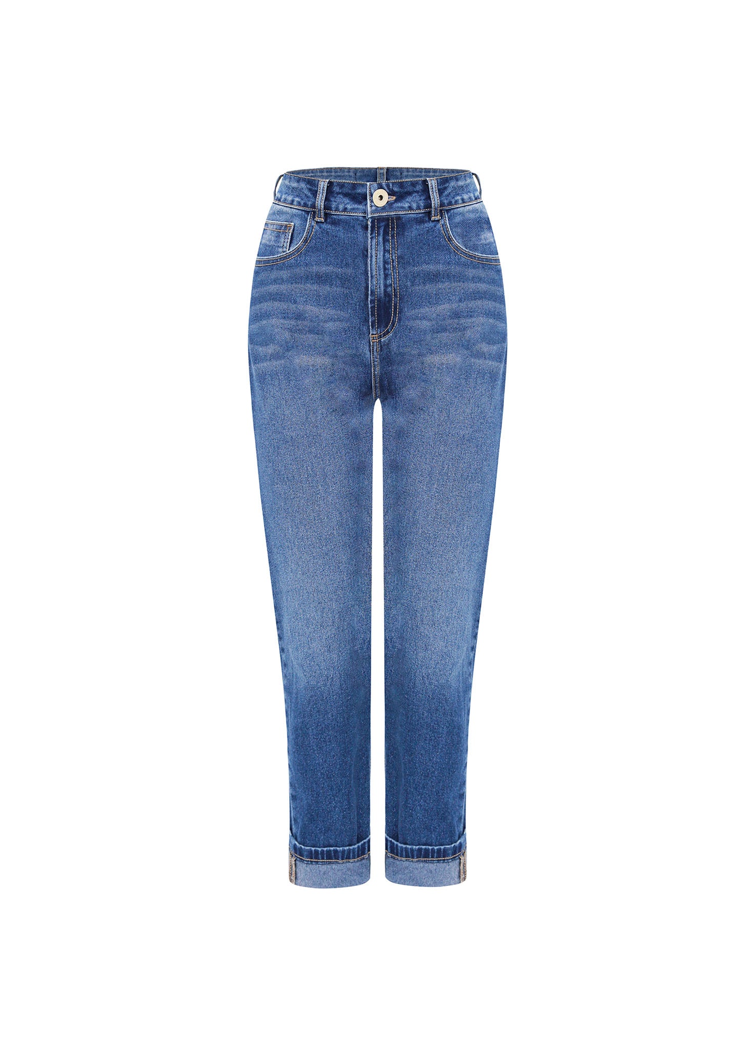 El lavado medio-oscuro ( mid-wash ) de la mezclilla ( denim ) es atemporal y fácil de combinar. La textura ligera en los muslos añade un toque sutil de desgaste natural y dimensión.