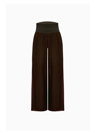 Este es un pantalón de corte sastre y bota recta clásica, diseñado para una silueta que alarga y estiliza. Confeccionado en un tejido con cuerpo en un sofisticado tono café (mocha o tierra). Esta pieza es la definición de la elegancia atemporal, perfecta para crear un look formal y depurado con un fit impecable.