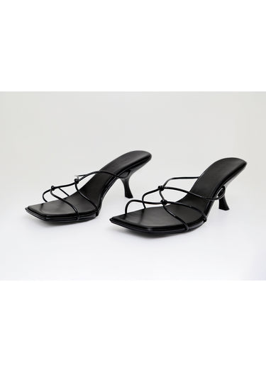 Añade un toque de minimalismo sofisticado a tu colección de calzado con estos tacones de tiras finas. Con un elegante acabado brillante, estas sandalias presentan una puntera cuadrada de estilo retro y un tacón de gatito (kitten heel) para un look chic y cómodo. Las tiras finas se entrelazan de forma delicada, creando una silueta moderna y elegante que es perfecta para cualquier ocasión, desde una noche de fiesta hasta un evento especial.