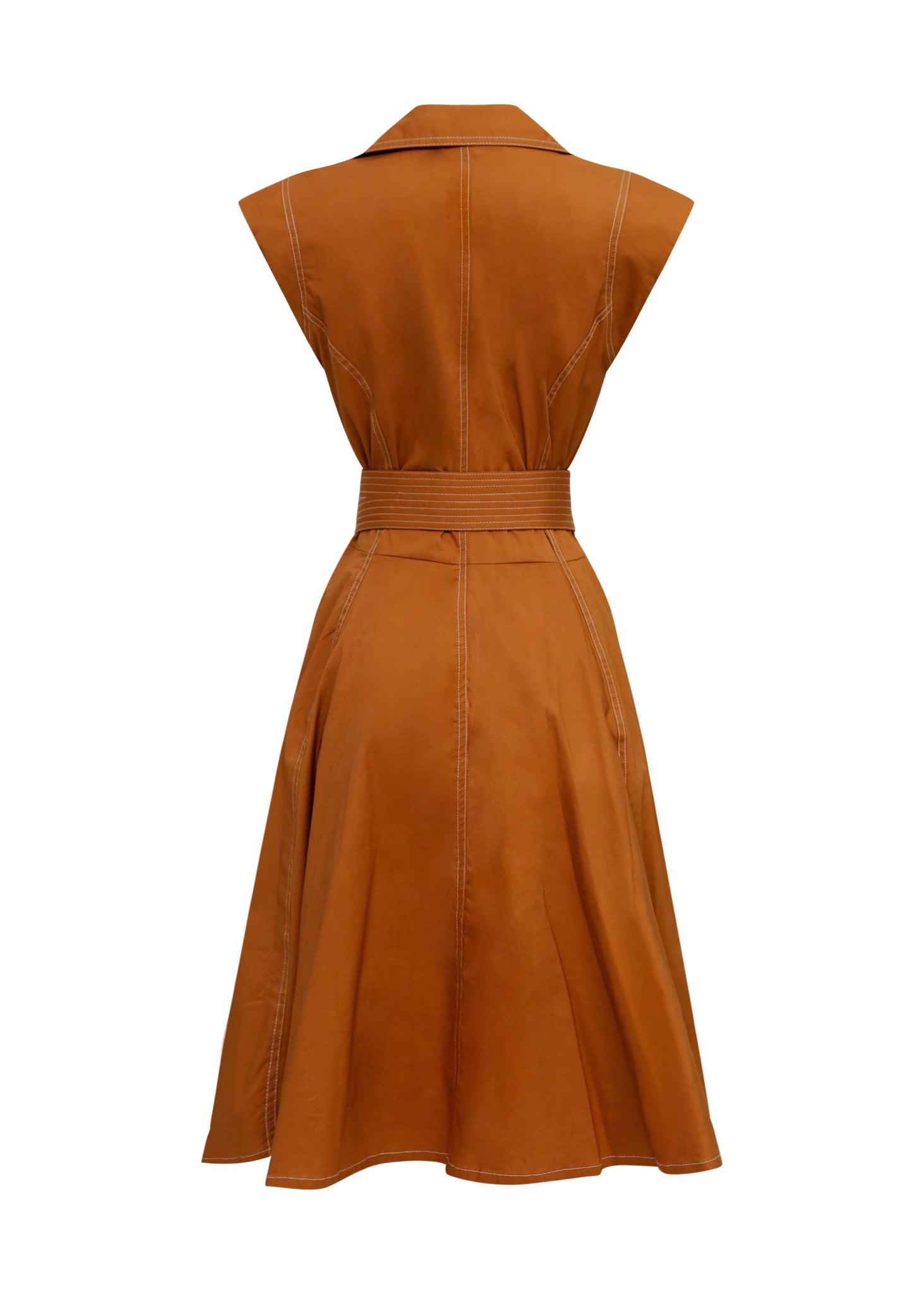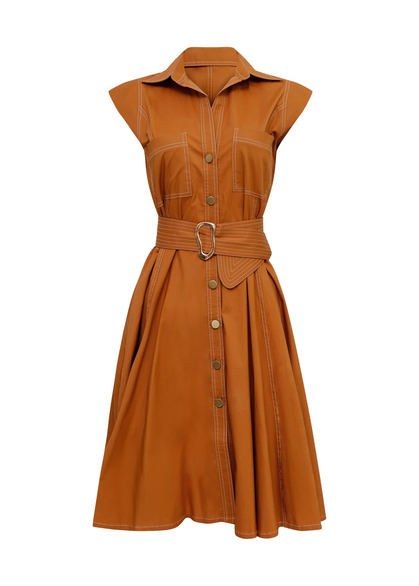Descubre la elegancia sin esfuerzo con nuestro vestido midi con cinturón. Confeccionado en algodón compuesto de alta calidad, ofrece comodidad excepcional y un drapeado impecable que favorece tu figura. El cinturón integrado define tu cintura y añade un toque sofisticado a cualquier ocasión, desde reuniones de trabajo hasta eventos especiales. Versátil, transpirable y fácil de cuidar, este vestido es tu aliado perfecto para un guardarropa moderno y funcional.