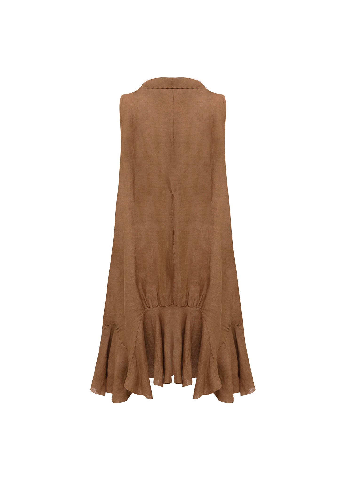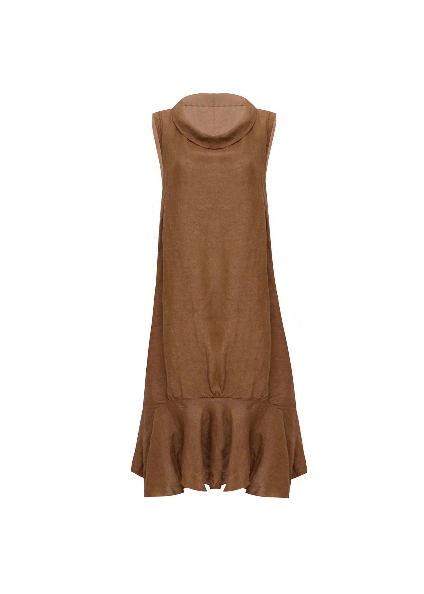 Este Vestido Midi en Lino de tono tierra te ofrece una elegancia natural y fresca, ideal para cualquier ocasión de clima cálido. Destaca por su sofisticado cuello desbocado sin mangas y su silueta ligeramente holgada, que culmina en un volante en el bajo que aporta movimiento y un toque de feminidad chic. Confeccionado en lino, garantiza máxima transpirabilidad y comodidad, convirtiéndose en la pieza clave para un estilo casual elevado o para eventos de verano.