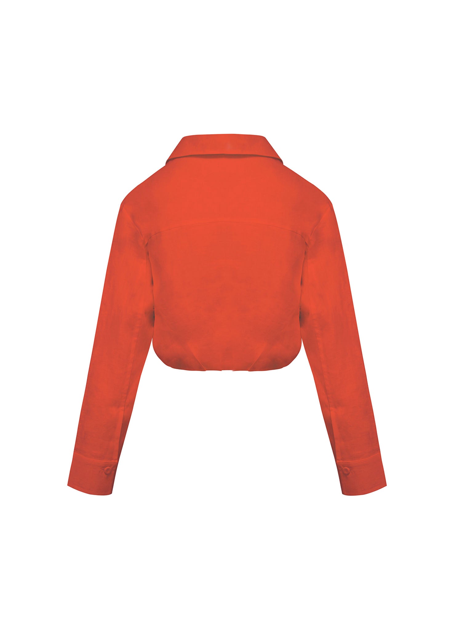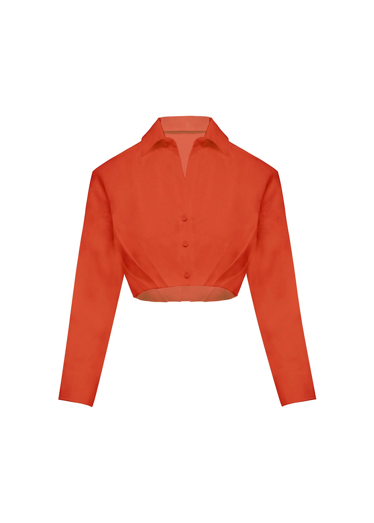 Esta blusa con mangas largas y botones en el frente. Su diseño sencillo y fresco la convierte en una prenda versátil, ideal para combinar con pantalones de tiro alto o faldas. Los botones añaden un detalle práctico y estilizado, mientras que el tono naranja aporta un toque vibrante y enérgico.