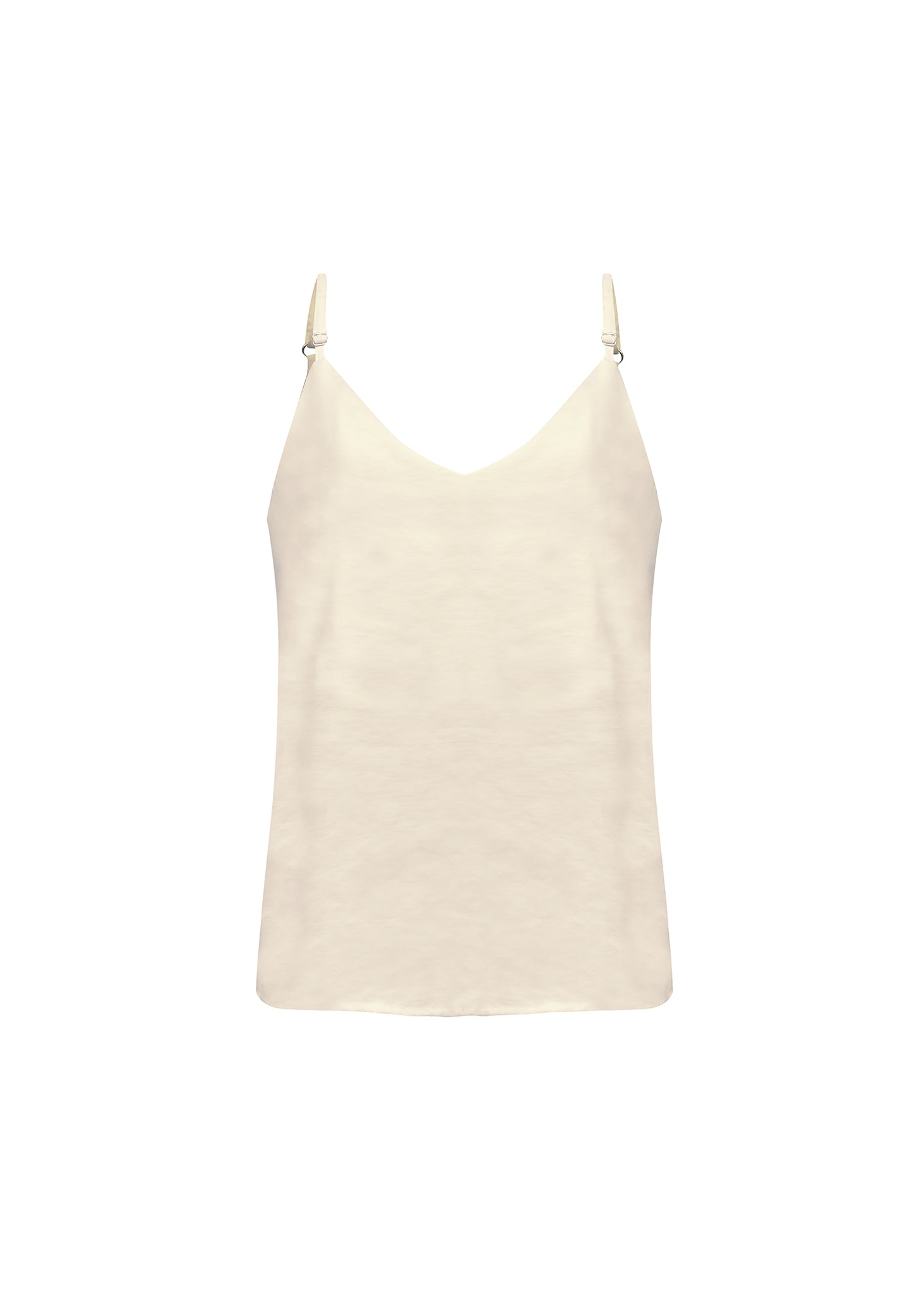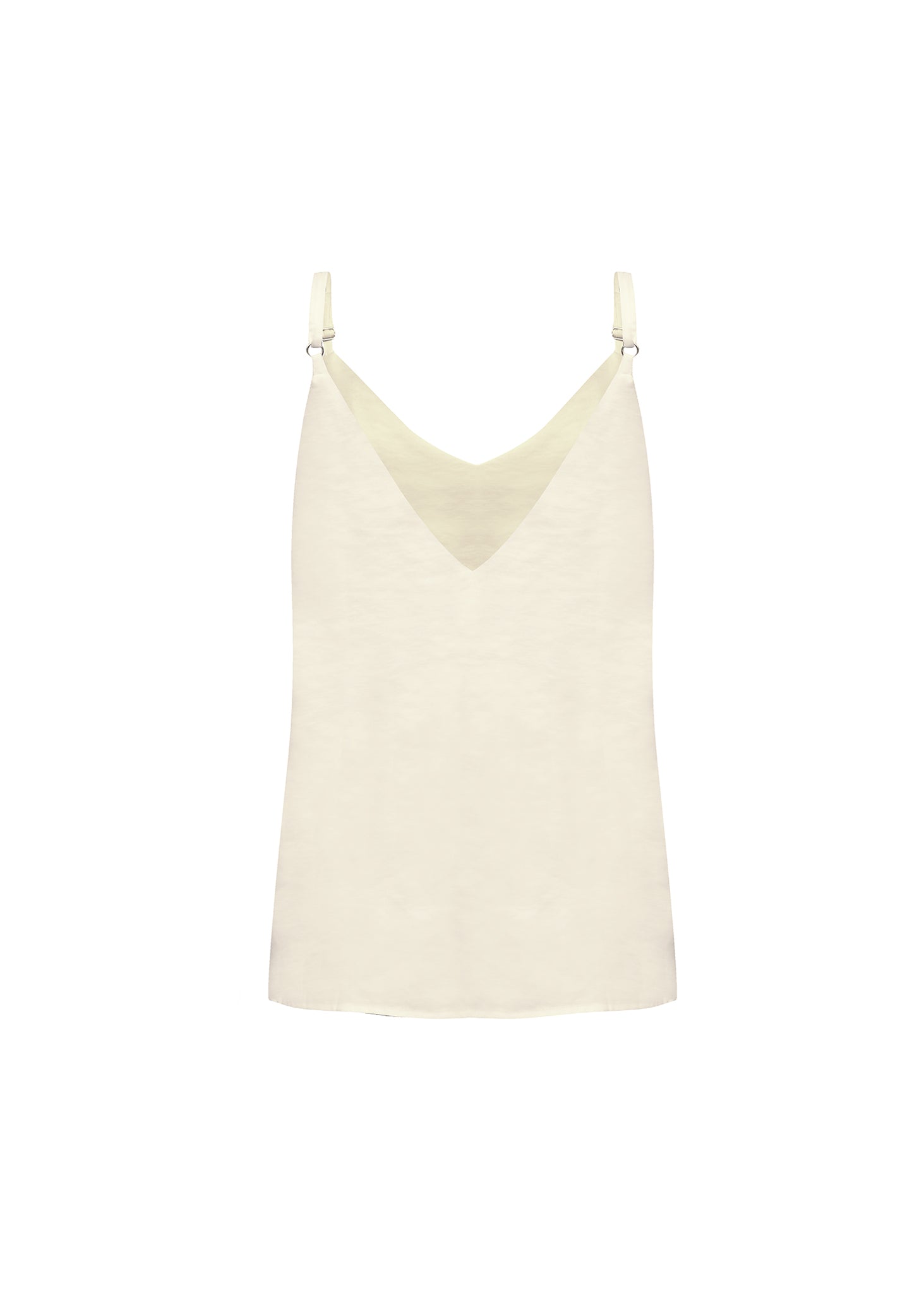 Esta blusa de tirantes es un básico esencial para tu armario. Confeccionada en un tejido ligero y suave al tacto, ofrece comodidad y versatilidad para el día a día. Su escote en V en la parte posterior favorece la figura y la hace ideal para combinar con todo tipo de prendas.