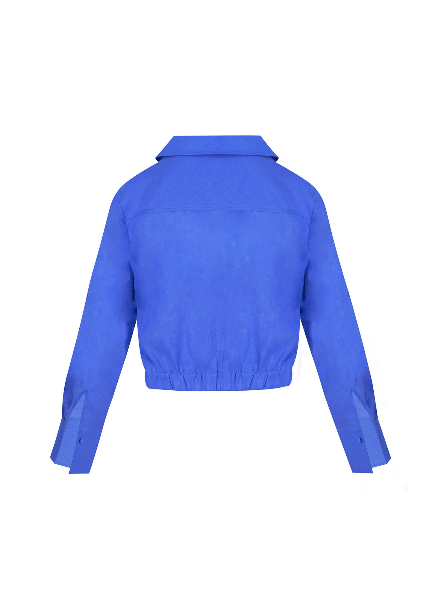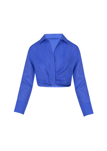 Captura la esencia de la sofisticación estival con nuestra Blusa Signature de Lino "Cobalto Twist", una pieza clave confeccionada en lino premium y transpirable en un vibrante tono Azul Cobalto. Su diseño escultórico fusiona la frescura del tejido natural con una silueta statement gracias al nudo frontal arquitectónico, que crea un ajuste sutil en la cintura y un escote en V favorecedor, mientras que el cuello camisero clásico y las mangas largas abotonadas añaden un toque de sastrería moderna.