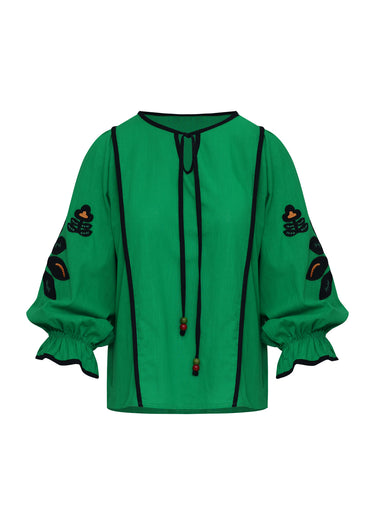 Esta blusa con bordados está confeccionada en algodón hindú, lo que garantiza una textura suave y transpirable. Los detalles bordados realzan su diseño, aportando un toque artesanal y sofisticado, ideal para quienes valoran la calidad y la tradición en cada prenda. Su confección cuidada asegura durabilidad y confort, convirtiéndola en una pieza única para incorporar en cualquier guardarropa.