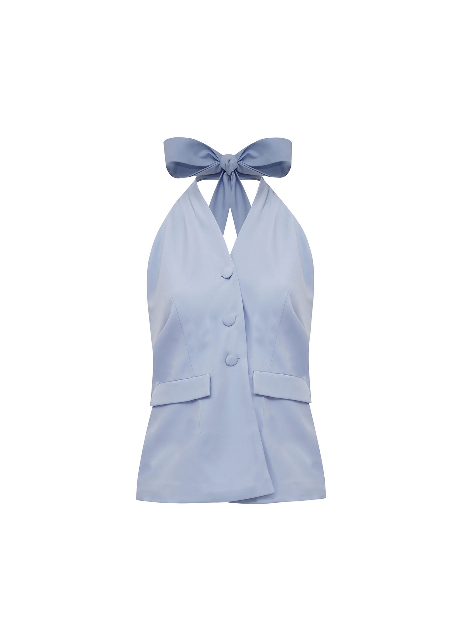 Esta blusa con cuello halter y corte peplum ofrece un diseño elegante y moderno que realza la silueta. Su estructura ceñida en la cintura y el volumen sutil en el bajo aportan un equilibrio perfecto entre estilo y comodidad, ideal para ocasiones formales o casuales. Los broches permiten un ajuste fácil y seguro, garantizando practicidad sin sacrificar la sofisticación. Un básico versátil para renovar cualquier guardarropa con un toque distintivo.
