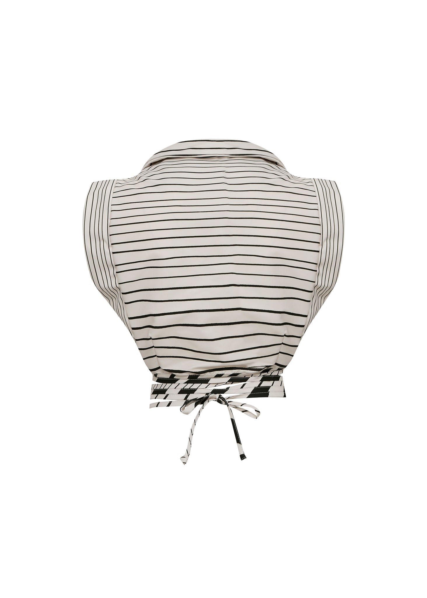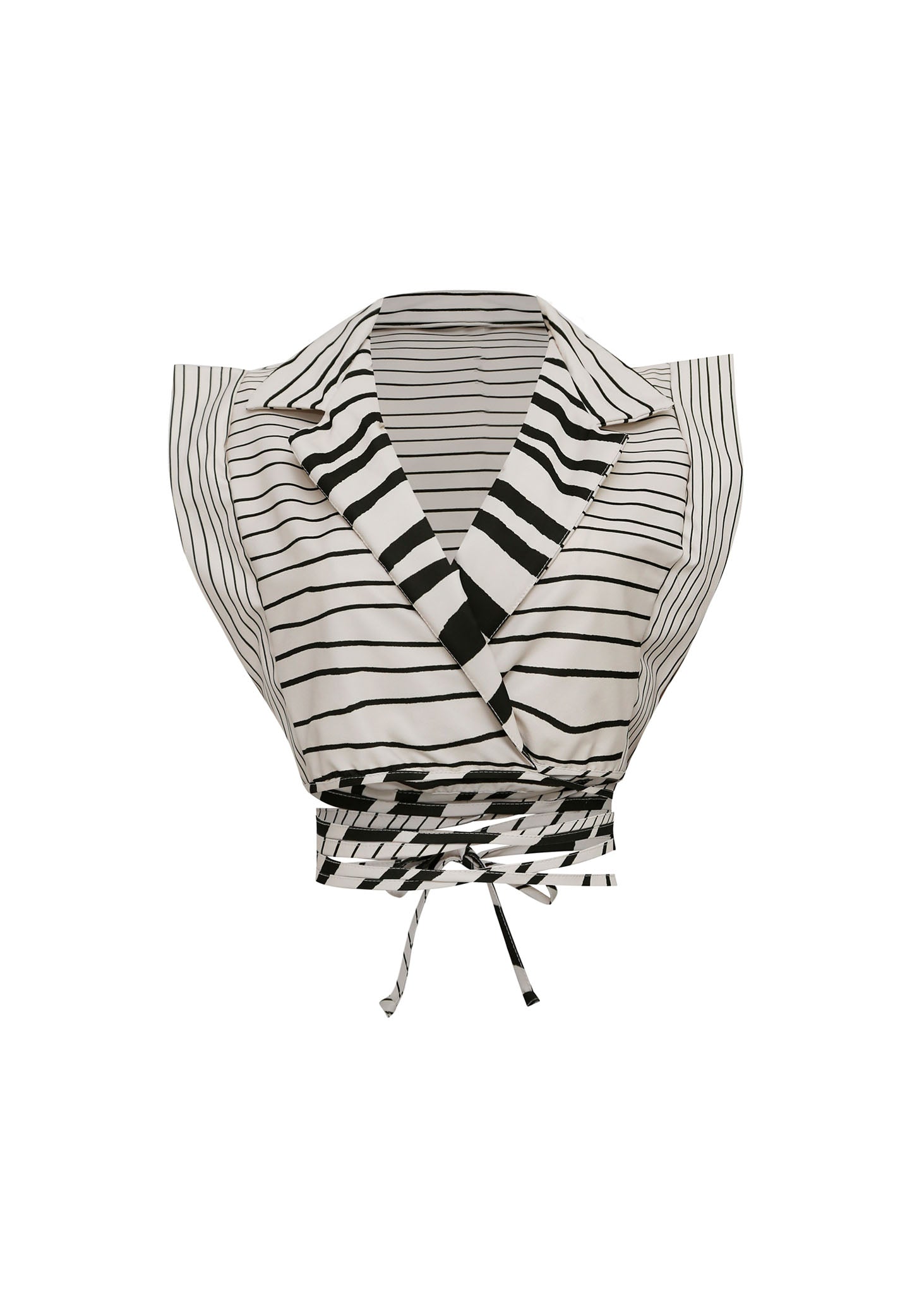 Esta blusa cruzada de rayas está confeccionada en un tejido compuesto de algodón que garantiza comodidad y durabilidad. Su diseño cruzado aporta un ajuste favorecedor y sofisticado, ideal para combinar en distintas ocasiones. La textura natural del algodón mejora la transpirabilidad, manteniendo frescura durante el día. Perfecta para quienes buscan estilo y funcionalidad en una sola prenda.