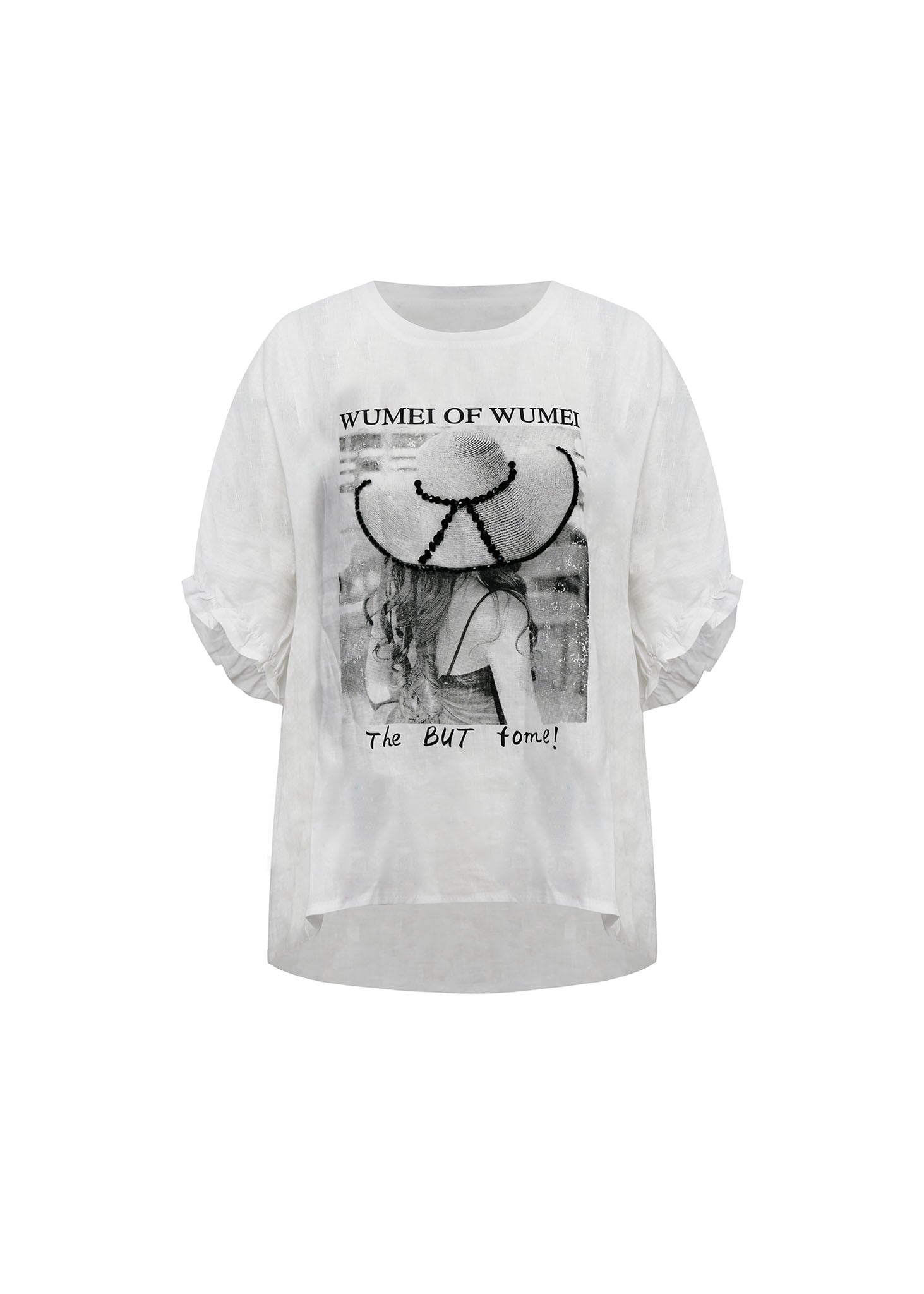 Esta blusa oversize, confeccionada en lino transpirable, luce un distintivo estampado de sombrero que le da un toque artístico a tu armario. Su silueta relajada garantiza comodidad y libertad de movimiento, ideal para climas cálidos, con un estilo sofisticado y natural.