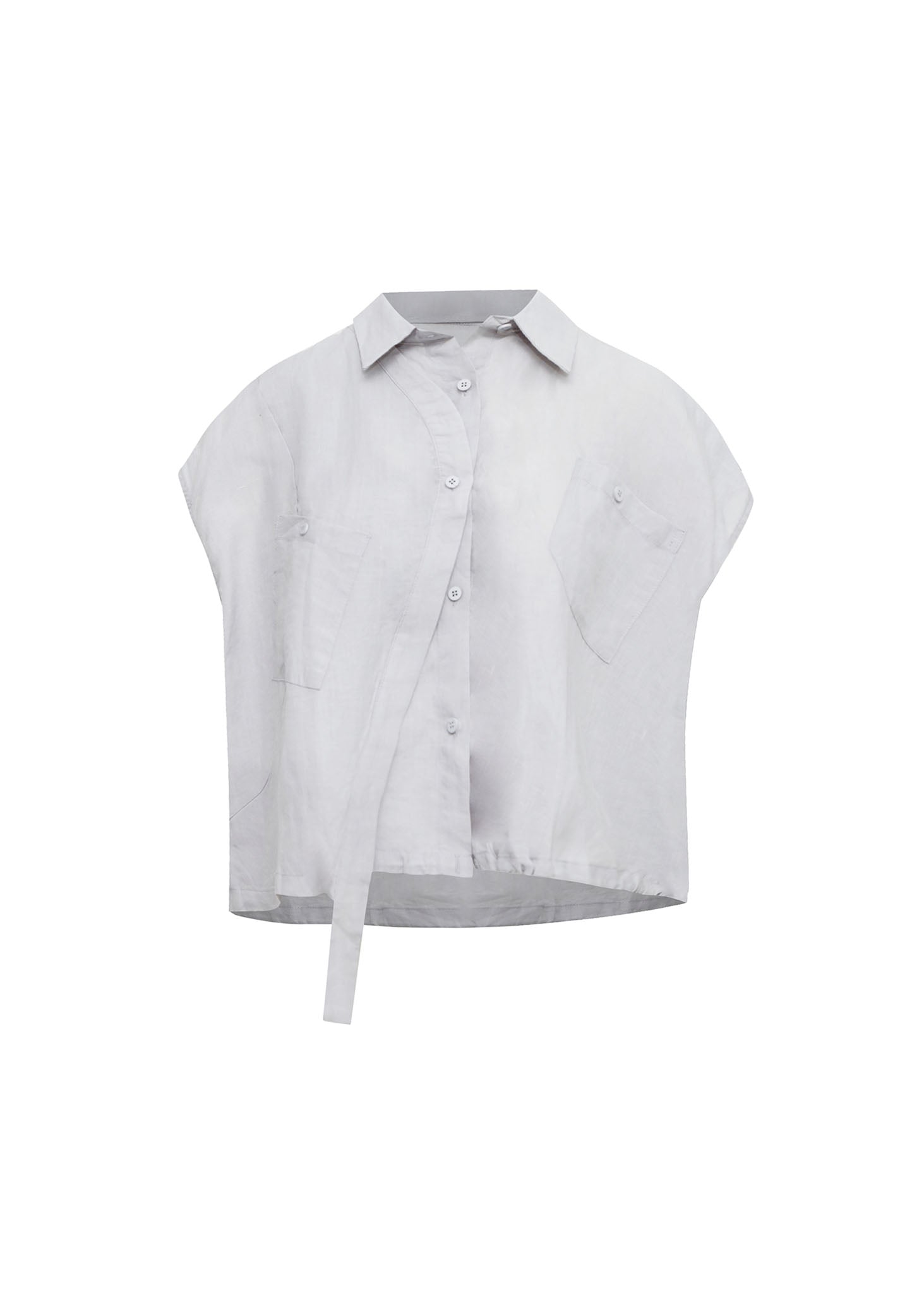 Esta blusa es una reinterpretación moderna de la camisería clásica, diseñada para ofrecer una frescura excepcional con una estética de lujo relajado. Confeccionada en un tejido de lino de alta calidad en color gris pálido, la prenda destaca por su textura orgánica y su caída ligera, ideal para climas cálidos y estilismos sofisticados.