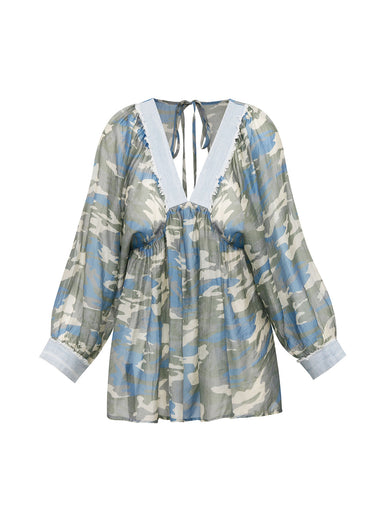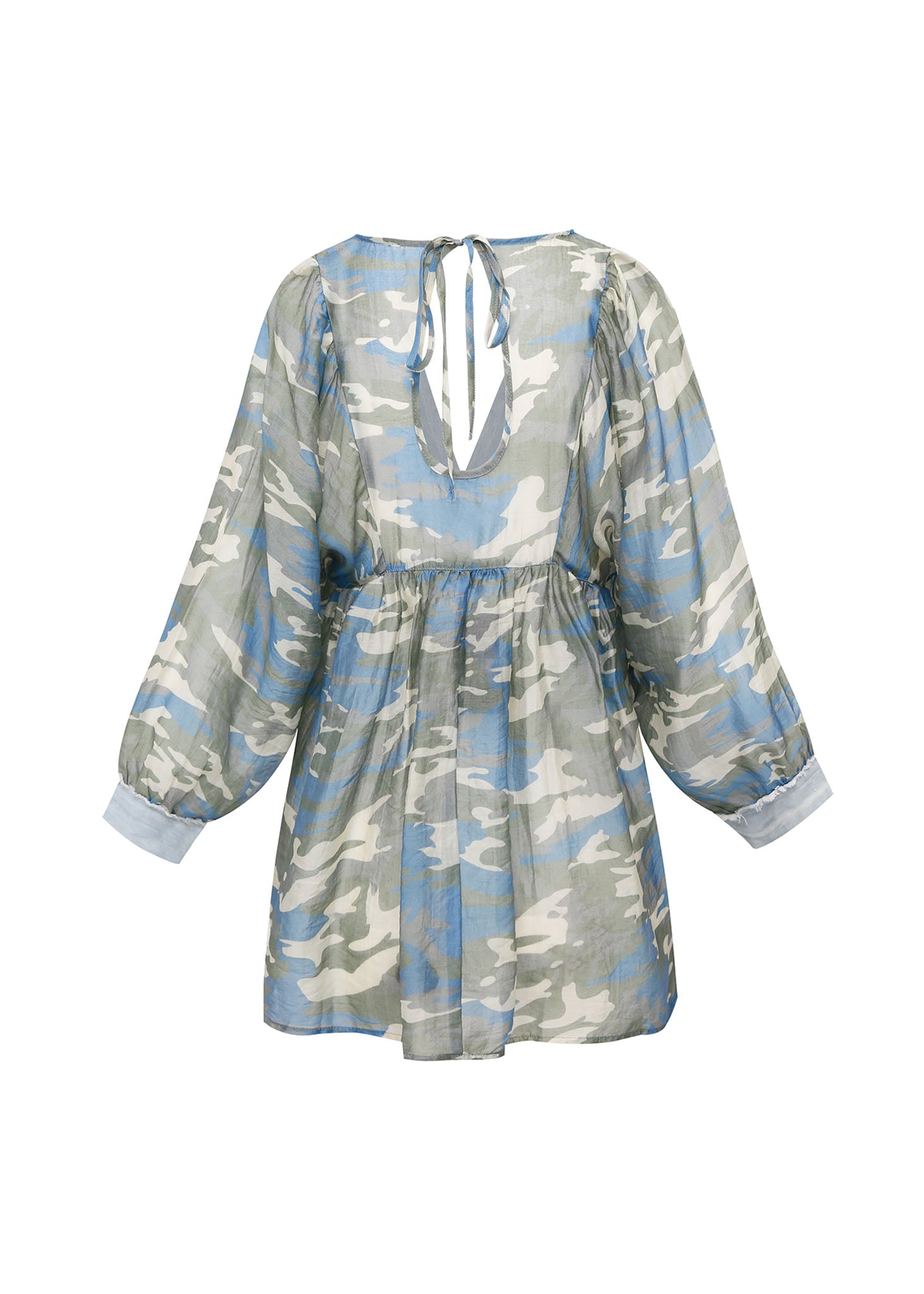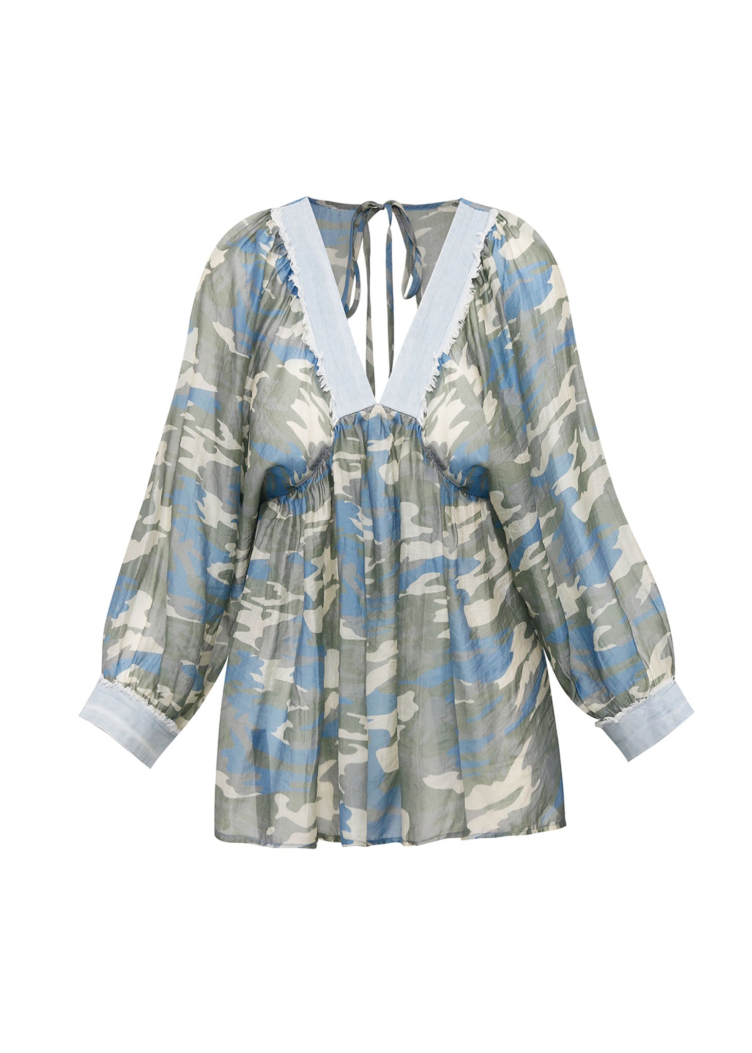 Esta blusa de manga rangla con estampado militar combina estilo y funcionalidad para un look contemporáneo. Su diseño de manga rangla ofrece comodidad y libertad de movimiento, mientras que el patrón militar añade un toque de tendencia robusta y versátil. Ideal para quienes buscan una prenda que aporte carácter sin sacrificar confort en el uso diario.