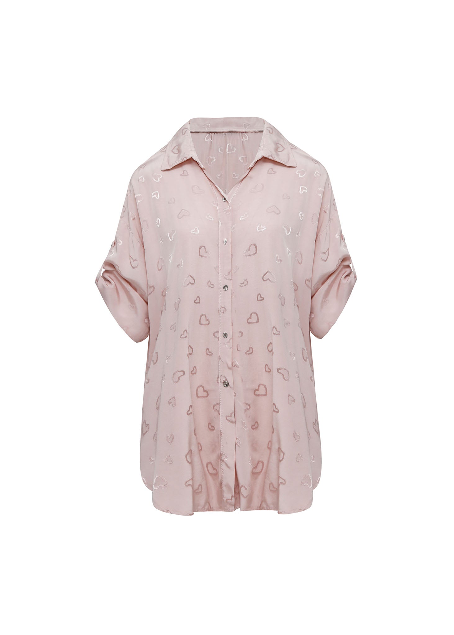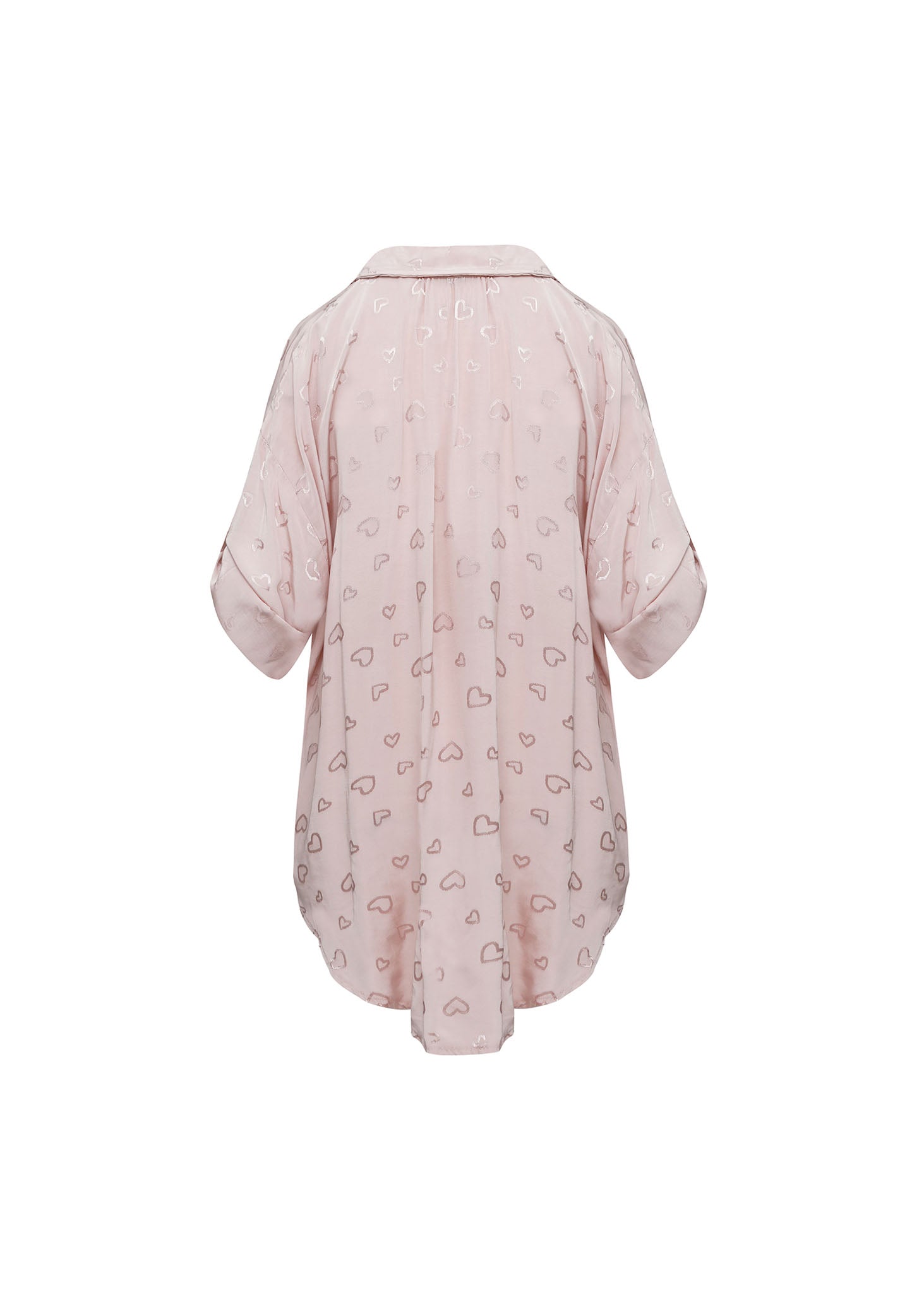 Esta camisa rosa de corazones, confeccionada en algodón, ofrece una silueta oversize que garantiza comodidad y estilo contemporáneo. Su diseño encantador con estampado de corazones aporta un toque romántico y versátil, ideal para looks casuales o urbanos. Perfecta para quienes buscan una prenda ligera y con presencia, combina facilidad de uso con tendencia actual.