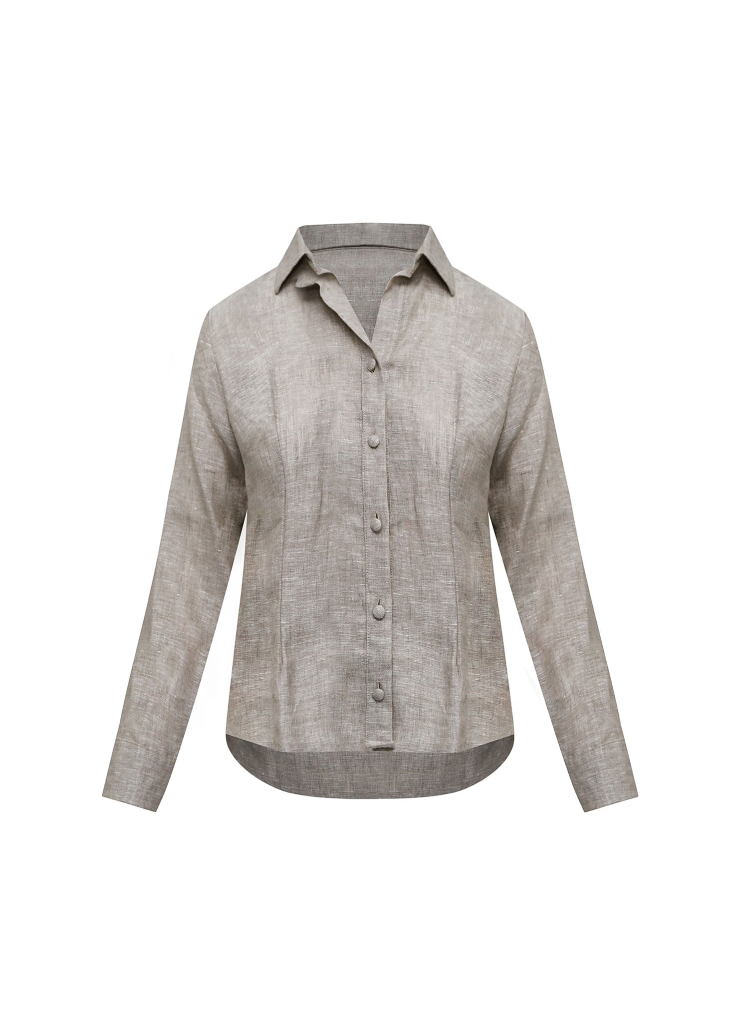 Esta camisera ajustada en lino combina comodidad y elegancia gracias a su tejido natural y transpirable. Su corte entallado realza la silueta de manera sofisticada, perfecta para un estilo pulido en climas cálidos. Ideal para ocasiones formales o casuales, ofrece frescura y un acabado impecable en cada uso.