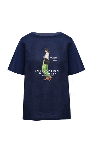 Nuestra camiseta Joyful es una oda a la frescura y la espontaneidad, diseñada para quienes buscan elevar sus básicos con un toque de arte narrativo. Esta pieza destaca por su ilustración central de estilo acuarela, que retrata una figura infantil con detalles en azul cerúleo y rojo carmín, evocando una sensación de optimismo y libertad.