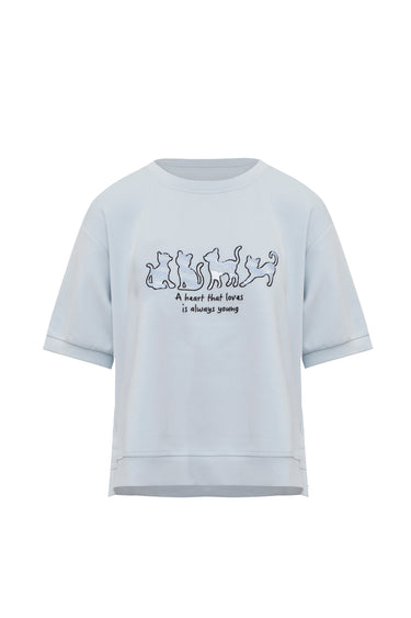 Nuestra camiseta Joyful es una oda a la frescura y la espontaneidad, diseñada para quienes buscan elevar sus básicos con un toque de arte narrativo. Esta pieza destaca por su ilustración central de estilo acuarela, que retrata una figura infantil con detalles en azul cerúleo y rojo carmín, evocando una sensación de optimismo y libertad.