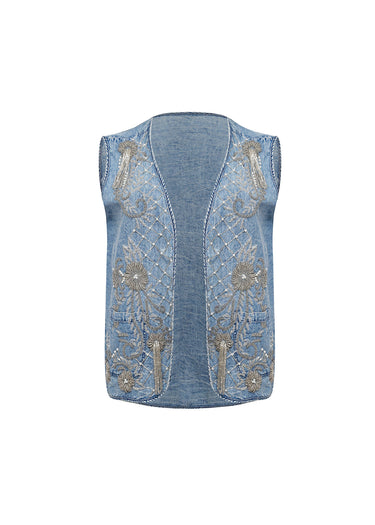 Este chaleco en lyocell combina la suavidad de una fibra natural y sostenible con bordados cuidadosamente elaborados que aportan un detalle sofisticado. Su diseño favorece la comodidad y la durabilidad, ideal para quienes buscan una prenda con estilo único y conciencia ambiental. Perfecto para complementar cualquier look con un toque artesanal y elegante.