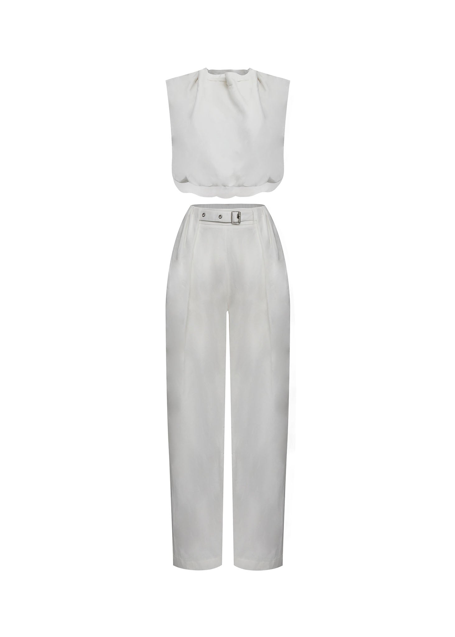 Define la elegancia moderna con nuestro Conjunto de Dos Piezas 'Chic Minimalista'. Esta combinación es la esencia del lujo sin esfuerzo, fusionando tendencias de pasarela con la comodidad de una silueta tailoring impecable. Confeccionado en un nítido y sofisticado tono Blanco Marfil, es la pieza perfecta para destacar con un aire de absoluta pulcritud.