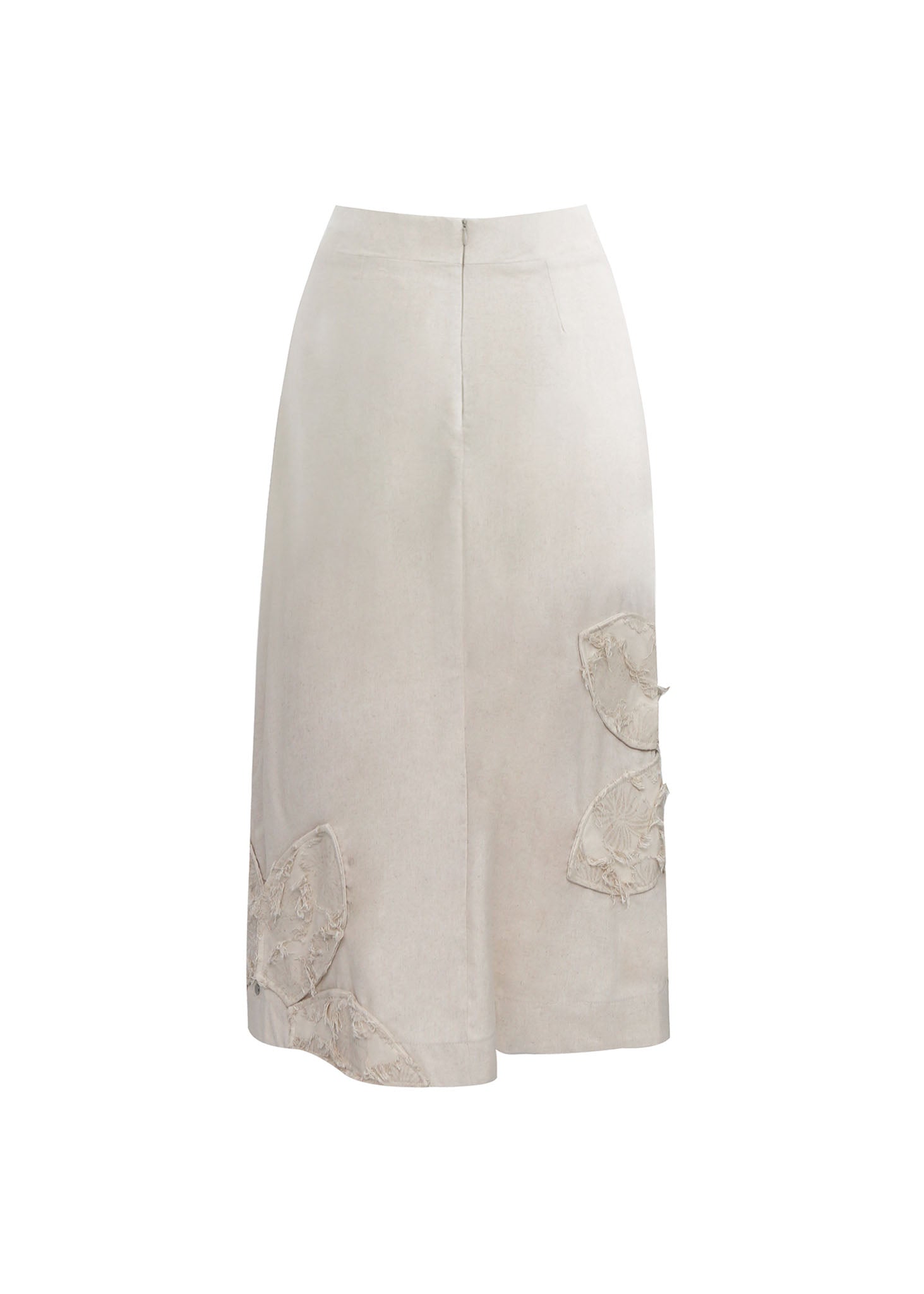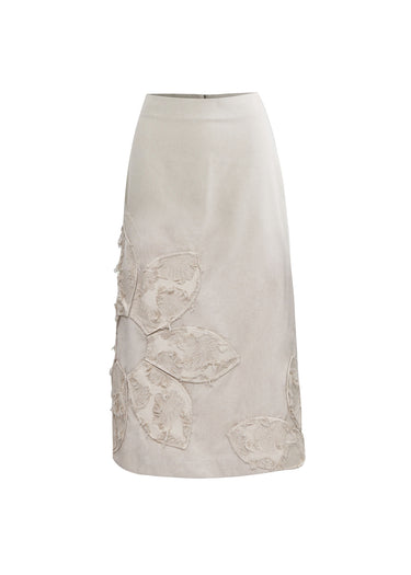 Esta falda de longitud midi es una pieza de diseño artesanal que destaca por su riqueza táctil y su estética de lujo relajado. Confeccionada en un textil firme de color crema o marfil, la prenda presenta una silueta de columna que estiliza la figura con un ajuste limpio en la cintura.