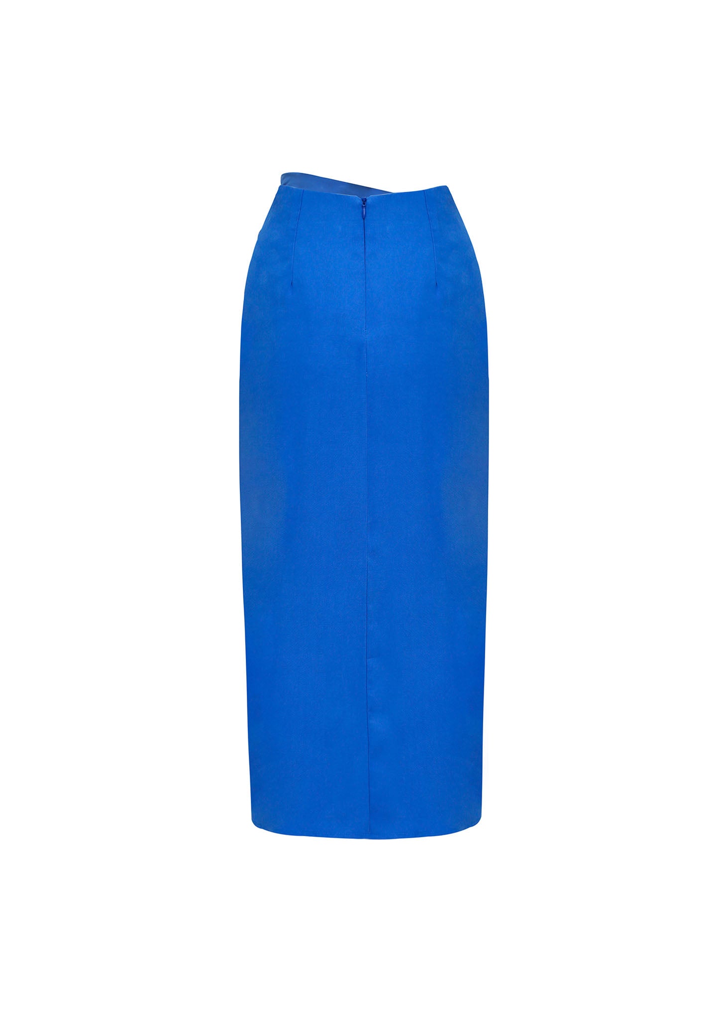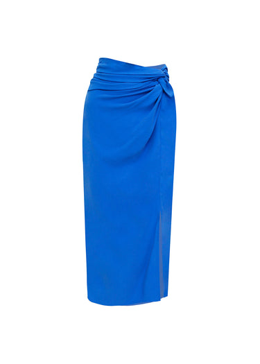 Cautiva en cualquier evento con esta espectacular Falda Midi en un vibrante azul eléctrico, la quintaesencia del color statement. Confeccionada en un tejido de satén de alto brillo, esta prenda ofrece una caída fluida y un movimiento lujoso.