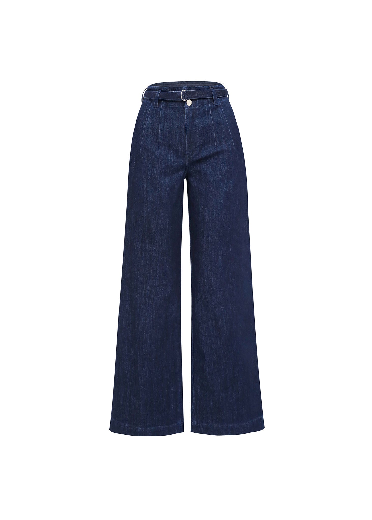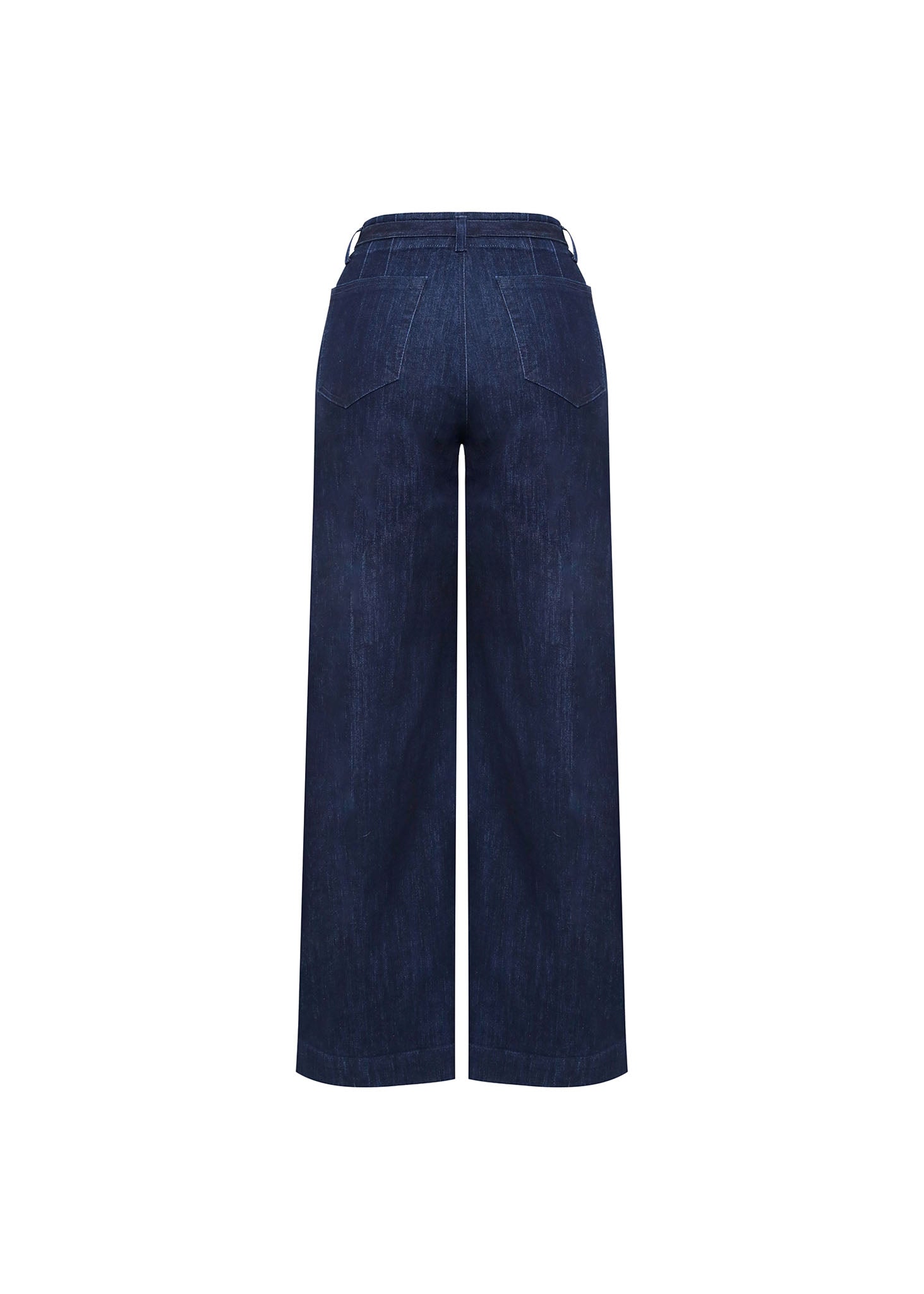 Eleva tu look al instante con estos espectaculares jeans. Su diseño se caracteriza por un talle extra alto que estiliza la cintura y alarga las piernas de forma dramática, y una pierna palazzo (ancha) que aporta un movimiento fluido y elegante. El denim de tono índigo profundo mantiene un acabado pulcro y sofisticado, ideal para vestirlos tanto de día como de noche. Incorporan un cinturón fino a juego con hebilla metálica para un ajuste perfecto y detalles de pinzas frontales que refinan aún más el corte. Son la alternativa perfecta a los pantalones de vestir.