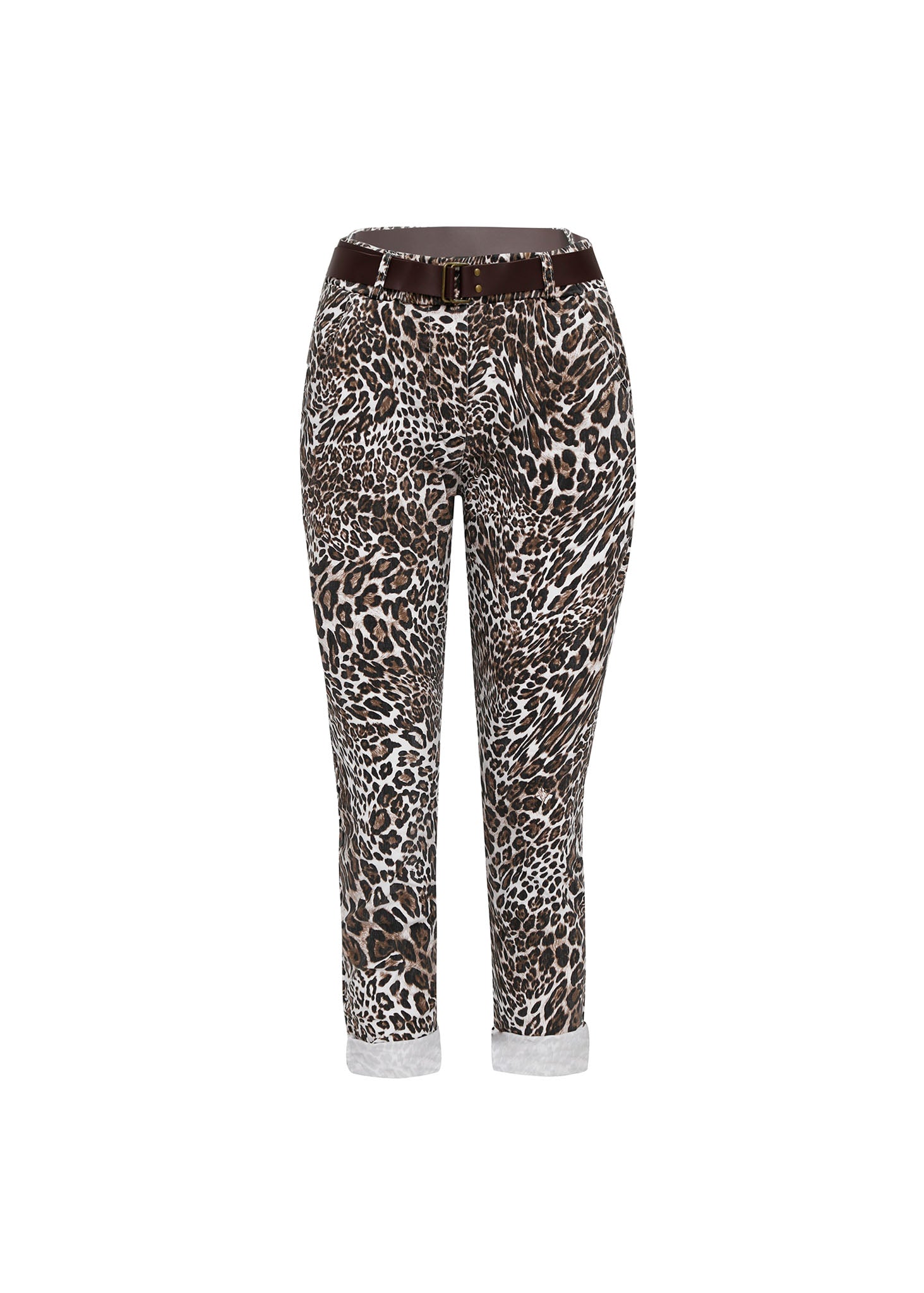 Libera tu lado más audaz con este Pantalón Chino de corte slim fit relajado, diseñado para una comodidad diaria sin sacrificar el estilo. Su auténtico estampado en tonos clásicos de marrón y negro le otorga un look de impacto que se complementa perfectamente con el cinturón de cuero de contraste, el cual estiliza la cintura alta. El diseño con el bajo doblado añade un toque chic e informal, haciendo de esta pieza la elección ideal para inyectar personalidad instantánea en cualquier outfit casual-elegante.