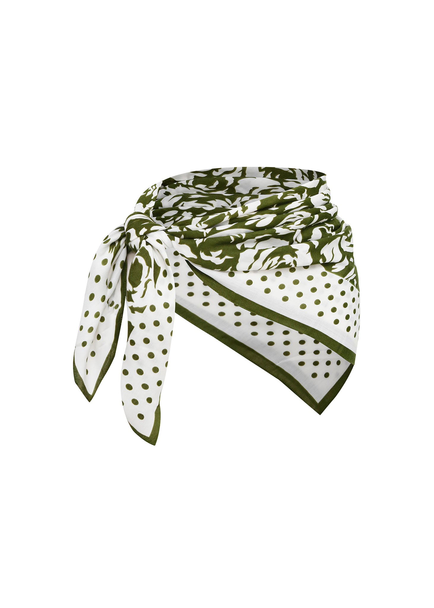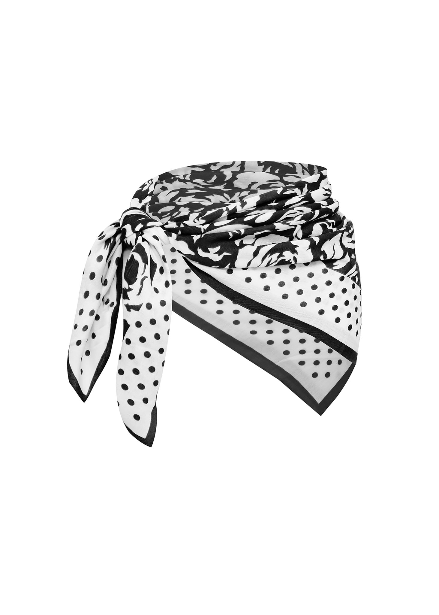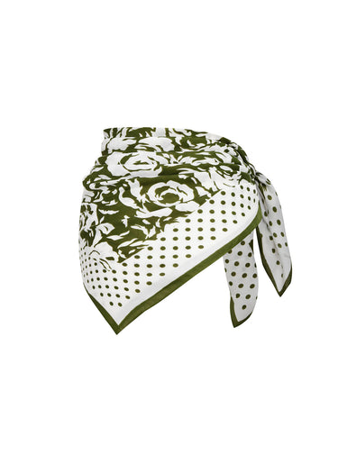 Aporta un toque retro y sofisticado a tu estilo con este vibrante Pañuelo Cuadrado. Presenta un atractivo diseño que combina un audaz estampado de Rosas con un elegante patrón de Lunares. El contraste y la tela suave al tacto hacen de este accesorio el complemento perfecto para cualquier look. Llévalo atado al cuello con un aire vintage, en el cabello o como detalle chic en tu bolso, inyectando un toque de color y feminidad a tu vestuario