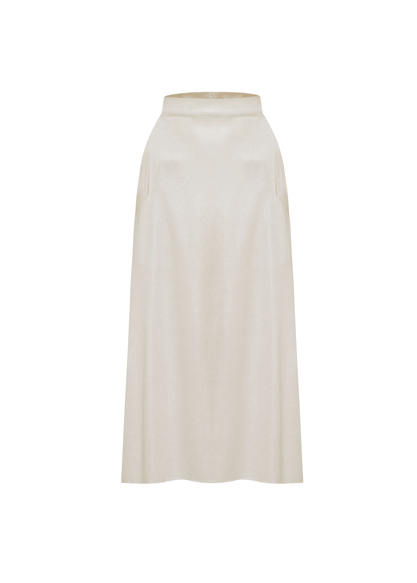 Este pantalón de pierna ancha y caída fluida combina la pureza del blanco marfil con la calidez terrosa del beige nude, creando un contraste elegante y atemporal. Su tejido de satín lujoso ofrece un brillo sutil que se mueve contigo, garantizando una comodidad suprema sin sacrificar el estilo.