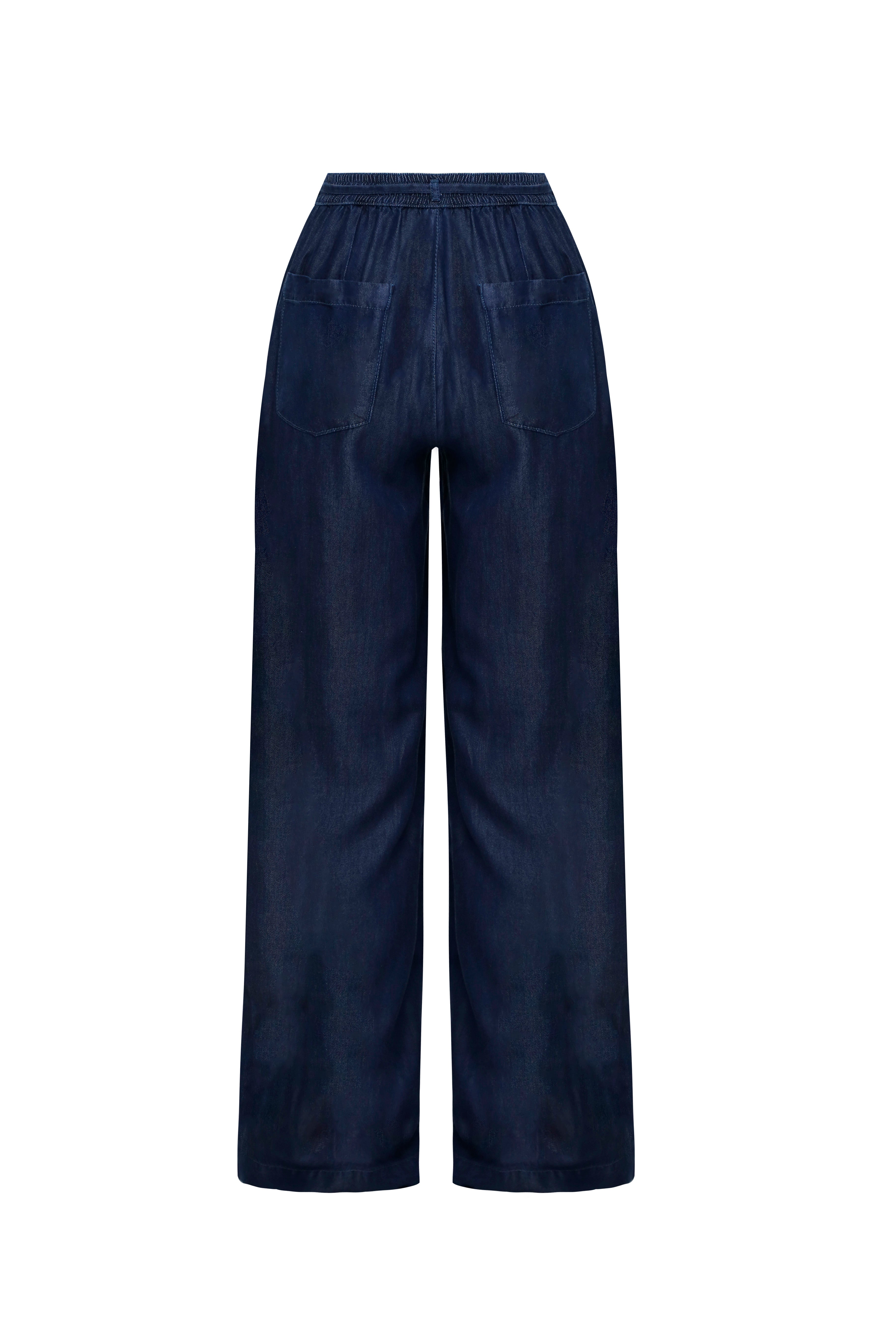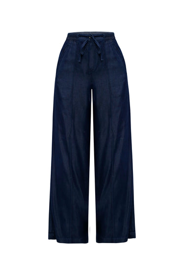 Eleva tu estilo diario con la combinación perfecta entre la versatilidad del denim y la comodidad de un lounge pant. Este pantalón de silueta Wide Leg (pata ancha) destaca por su caída fluida y un acabado azul índigo profundo que aporta sofisticación a cualquier look.