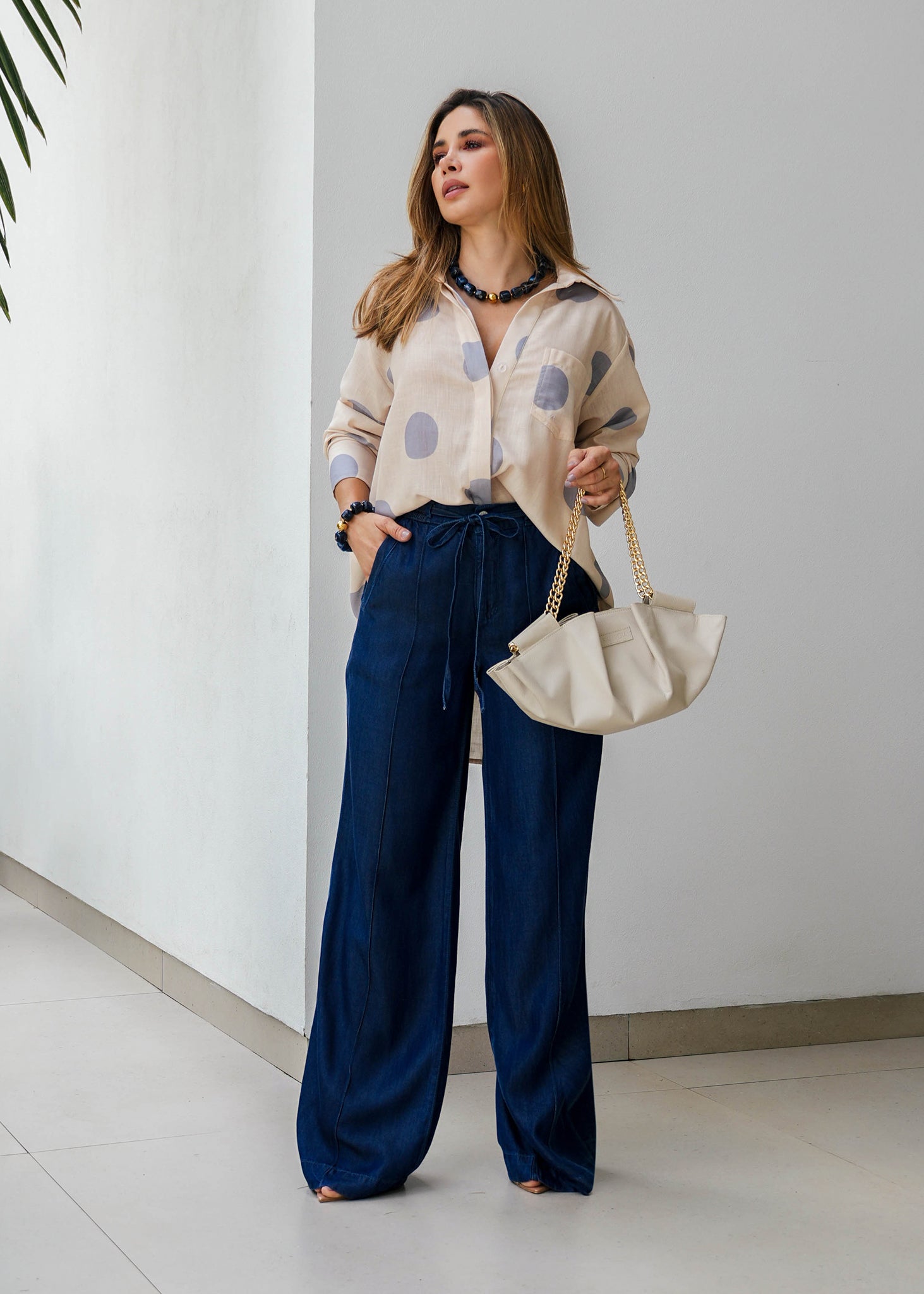 Diseñado pensando en la funcionalidad, cuenta con una cintura elástica fruncida que se adapta cómodamente a tu figura, permitiendo total libertad de movimiento. Es la prenda ideal para un estilo effortless que transiciona perfectamente de la oficina a una salida casual.