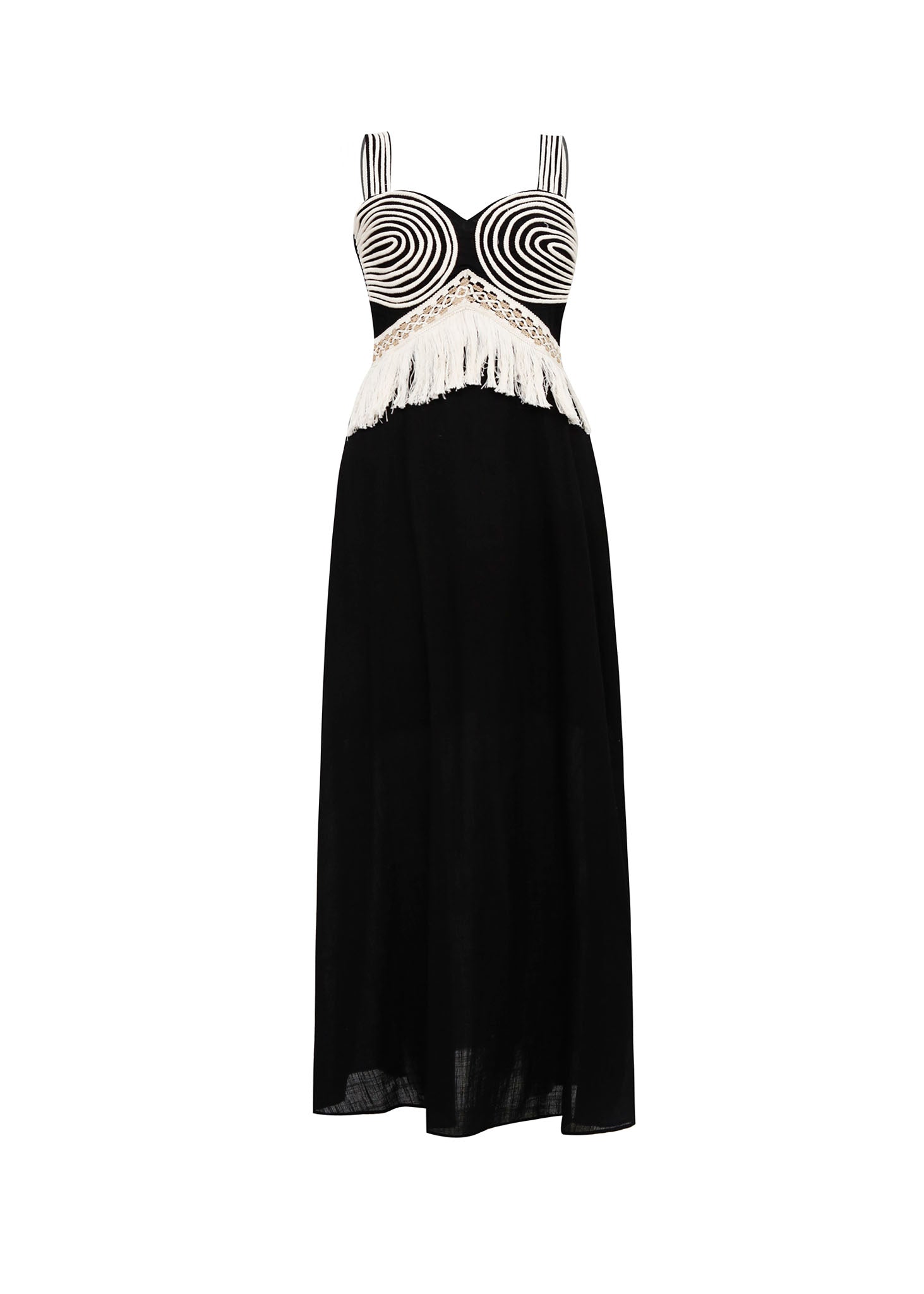 Este vestido destaca por sus delicados detalles de pasamanería recamada, que aportan un acabado sofisticado y artesanal. Su diseño elegante combina textura y estilo para realzar la figura, siendo ideal para ocasiones especiales donde se busca un toque de distinción y buen gusto. La calidad de los acabados garantiza durabilidad y comodidad, haciendo de esta prenda una inversión atemporal en tu guardarropa.