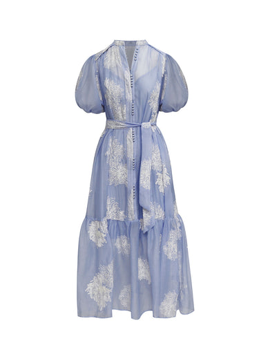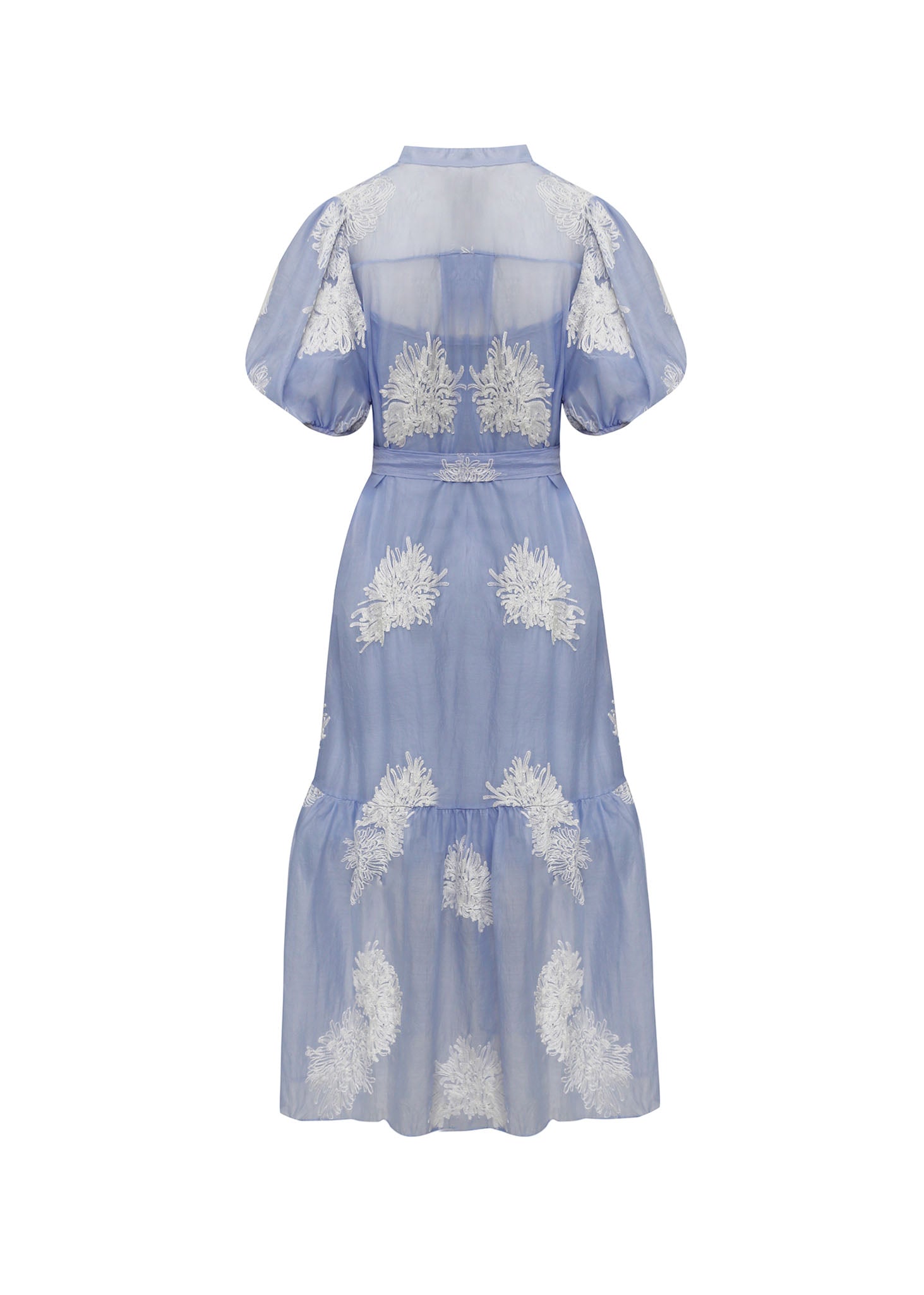 Este vestido en organza destaca por su delicadeza y elegancia, realzado con detalles bordados que aportan un acabado refinado y sofisticado. La estructura ligera de la organza asegura una caída fluida, ideal para ocasiones especiales donde se busca un look elegante y contemporáneo. Su diseño meticuloso equilibra textura y transparencia, ofreciendo comodidad sin sacrificar estilo. Perfecto para quienes valoran la artesanía en prendas exclusivas.