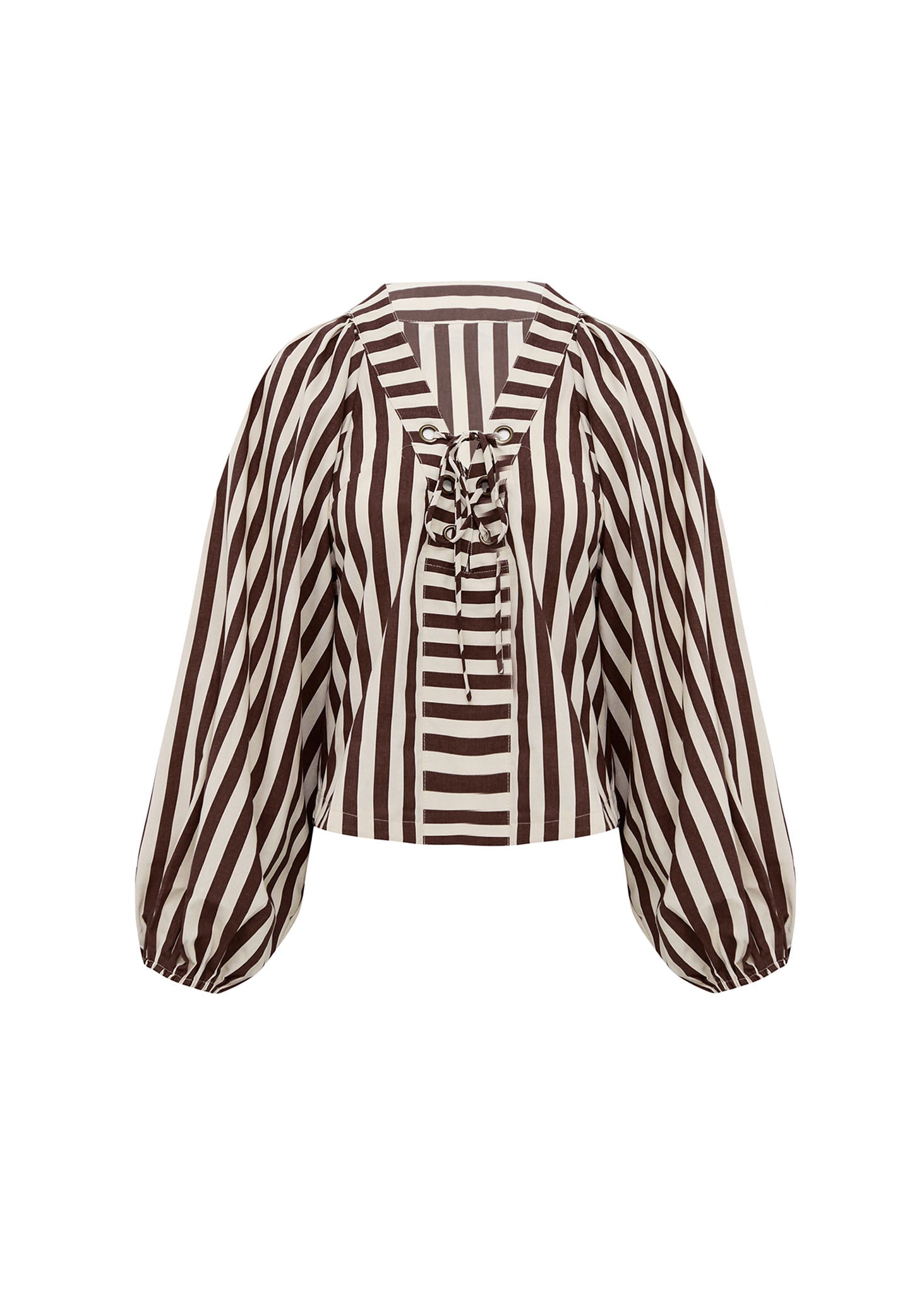 La Blusa Rayas Café y Crudo es la pieza clave para un closet sofisticado. Su diseño crop y la silueta oversize de las mangas abullonadas crean un equilibrio moderno. El detalle de cordones ajustables en la espalda o el escote le da un toque romántico y a la vez boho-chic, perfecto para usar en cualquier ocasión.