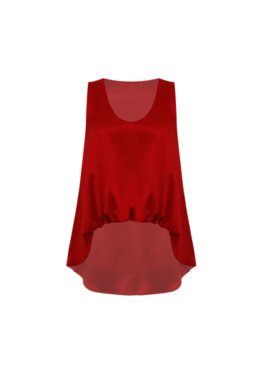 Esta blusa eleva el concepto del minimalismo lencero mediante un juego de texturas y volúmenes estratégicos. Confeccionada en un satín de brillo superior y tacto ultra sedoso, la prenda destaca por un escote en V que alarga la silueta y aporta una elegancia atemporal. El elemento distintivo reside en el bajo frontal, donde un acabado surcido o enresortado crea un fruncido orgánico que ciñe la prenda a la cintura, generando sutiles drapeados que realzan la zona del torso con un efecto visual de mayor dimensión. Esta estructura arquitectónica permite que la luz juegue con los relieves del satín, ofreciendo una estética moderna y sofisticada que equilibra la fluidez del tejido con un ajuste definido, ideal para combinar con prendas de talle alto en estilismos de noche o eventos sociales de alto nivel.