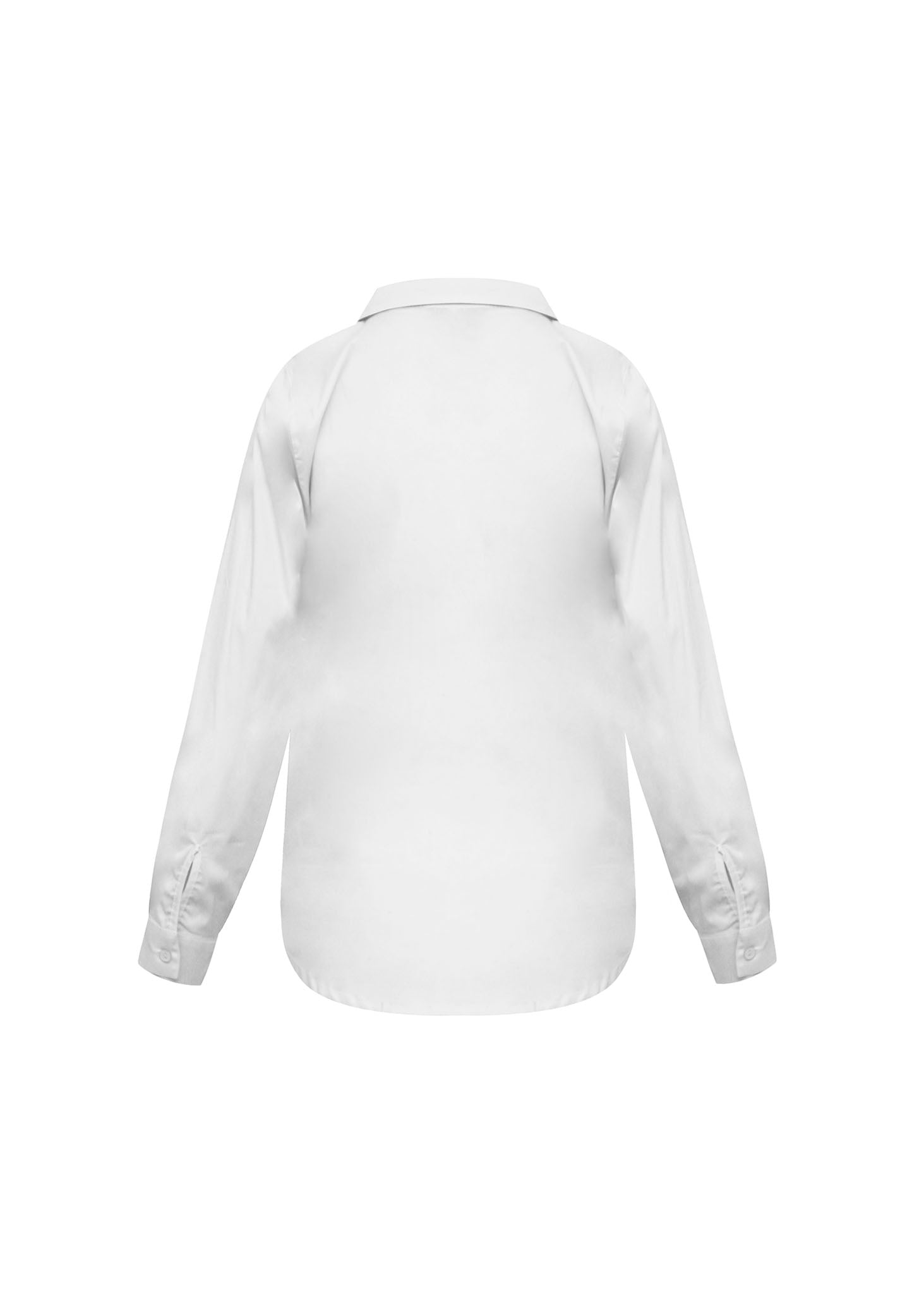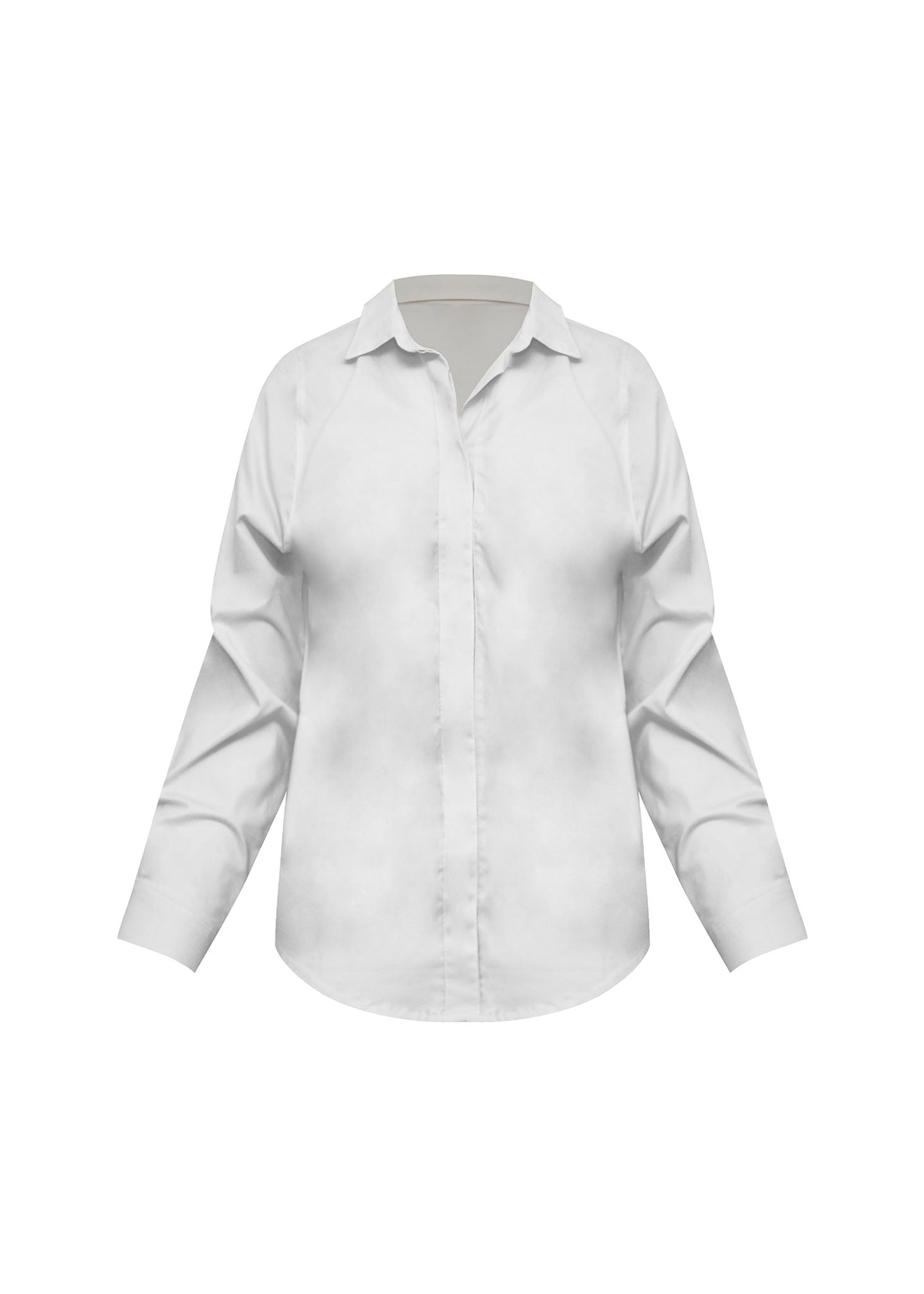 Esta camisa clásica de color blanco es una prenda esencial de fondo de armario que destaca por su pulcritud y su diseño minimalista. Confeccionada en un tejido con cuerpo que mantiene una estructura impecable, presenta un cuello de solapa tradicional y una tapeta frontal oculta que cubre la botonadura para lograr una estética limpia y sofisticada. Su silueta es ligeramente entallada con mangas largas terminadas en puños sencillos y un bajo sutilmente redondeado, lo que permite llevarla tanto por dentro como por fuera de prendas inferiores. Es la pieza de transición perfecta, capaz de anclar cualquier look desde un entorno profesional hasta uno casual elegante con total versatilidad.