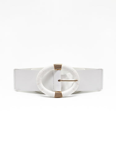 Este cinturón es el accesorio ideal para un look que equilibra la elegancia clásica con la textura orgánica de inspiración veraniega. La tira ancha está confeccionada en piel sintética o cuero. La pieza central es la hebilla forma ovalada, envuelta en mimbre trenzado en tono natural. Los detalles metálicos en los extremos de la hebilla añaden un toque sofisticado y vintage. Es el statement piece que necesitas para definir tu cintura con estilo boho-chic en cualquier temporada.