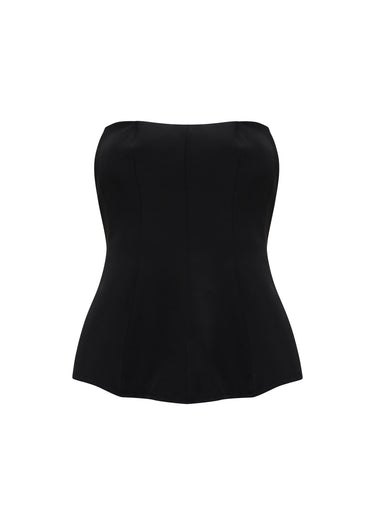 Este clásico top strapless negro es una pieza esencial que combina elegancia y versatilidad. El top presenta un diseño sin tirantes que resalta los hombros y el cuello, mientras que el corte peplum define la cintura y crea una silueta de reloj de arena. La tela de alta calidad se adapta perfectamente al cuerpo, ofreciendo un ajuste cómodo y estructurado.
