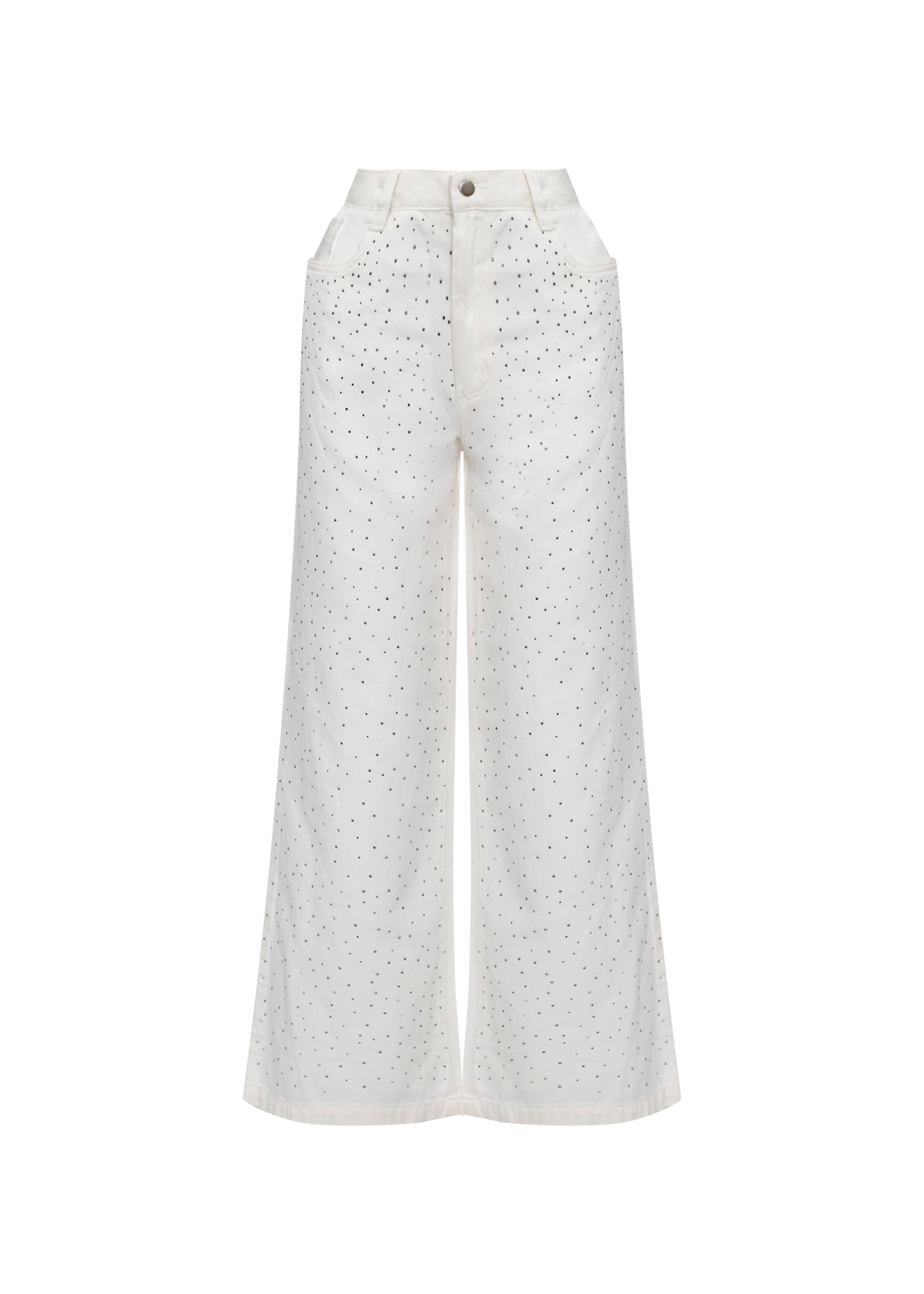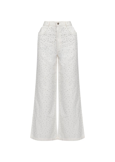 Eleva tu concepto de denim a una categoría de lujo. Nuestros Pantalones Stardust White son la fusión perfecta entre la comodidad urbana y el brillo de la alta costura. Confeccionados en un denim blanco impecable, cada centímetro de la prenda está salpicado de delicados cristales que capturan la luz con cada movimiento. Su silueta de pierna ancha y tiro alto garantiza una figura estilizada y moderna.