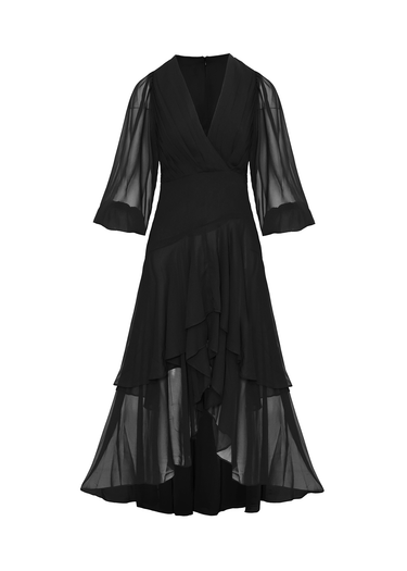 Este vestido negro largo elegante de mangas es una opción sofisticada y atemporal para eventos formales. Su diseño fluido resalta la figura, mientras que las mangas con un corte especial, añaden un toque de elegancia y distinción. El color negro, siempre chic, complementa perfectamente el estilo refinado de la prenda, haciendo de este vestido una elección ideal para ocasiones nocturnas o celebraciones importantes.